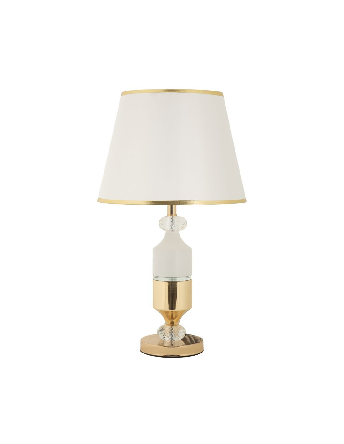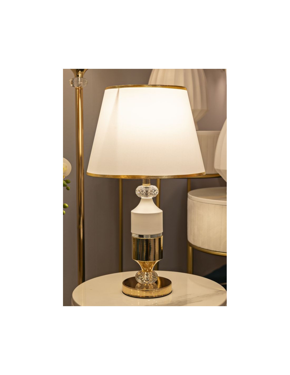 Grande Lampe à poser moderne chic Hauteur 52 cm Métal Doré Tissu Blanc Gipsy
