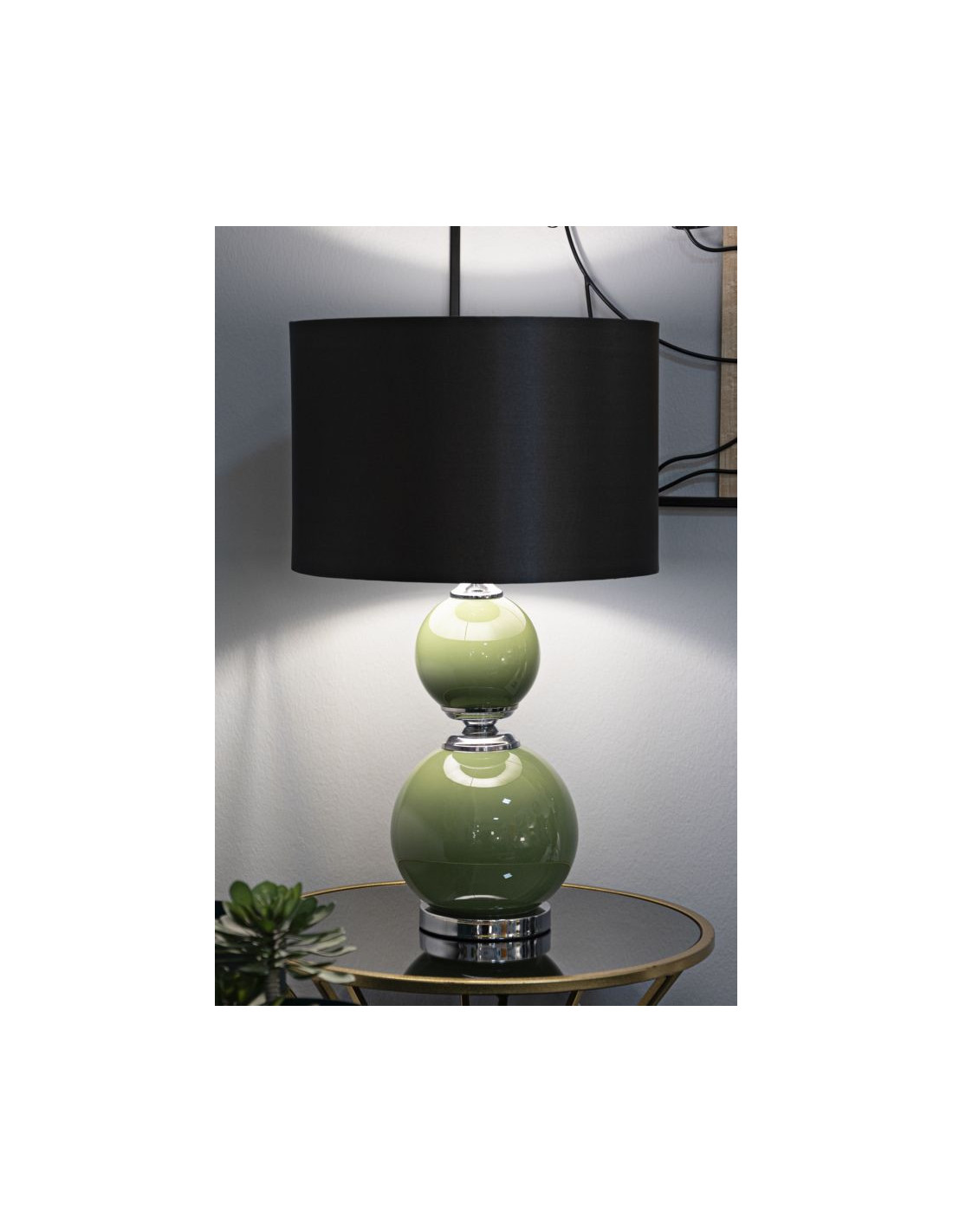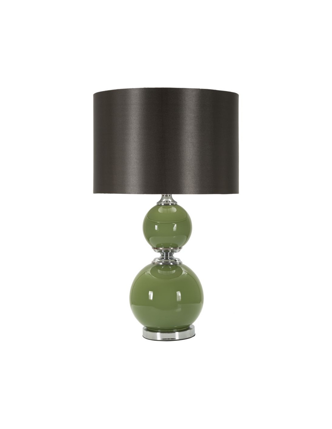 Grande Lampe à poser moderne chic Hauteur 61 cm en Verre Vert Tissu Marron Métal Argenté Eva