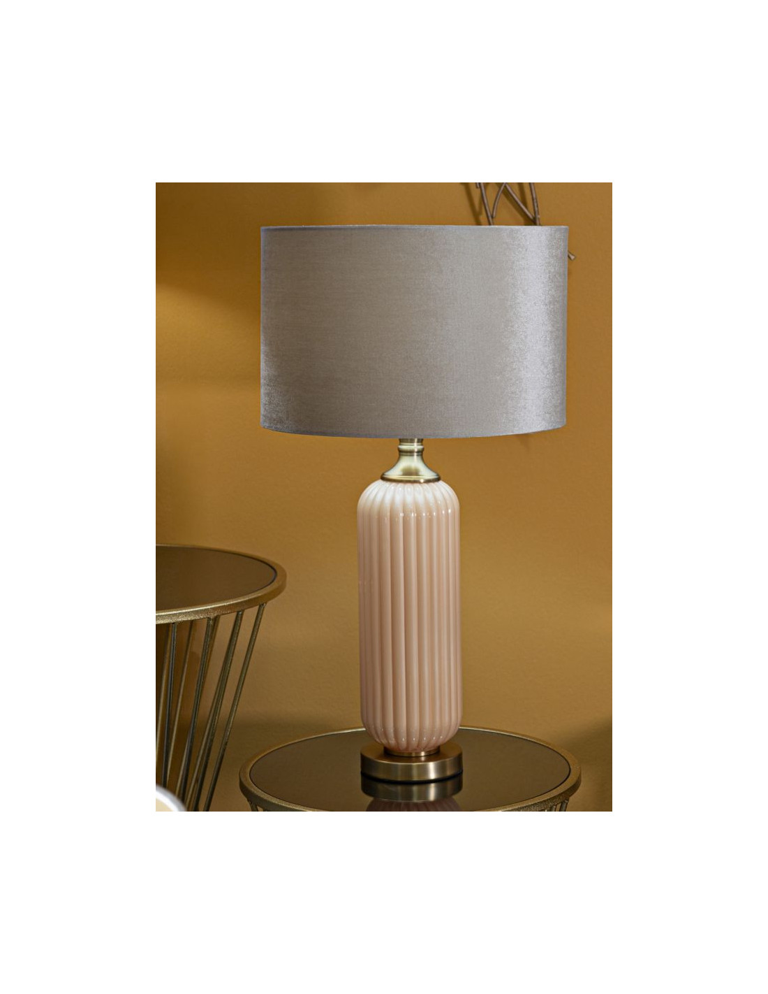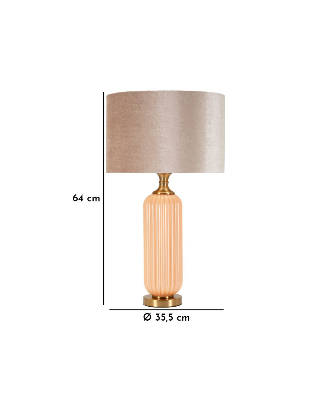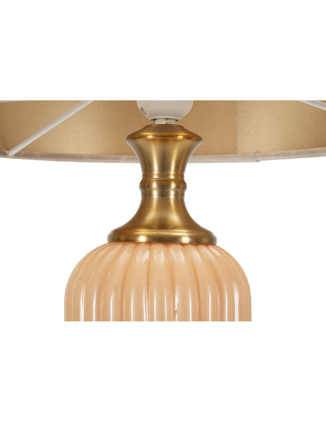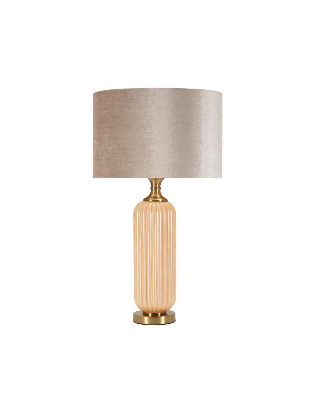Grande Lampe à poser moderne chic Hauteur 64 cm Verre Beige rosé Tissu Beige Métal Doré Perly