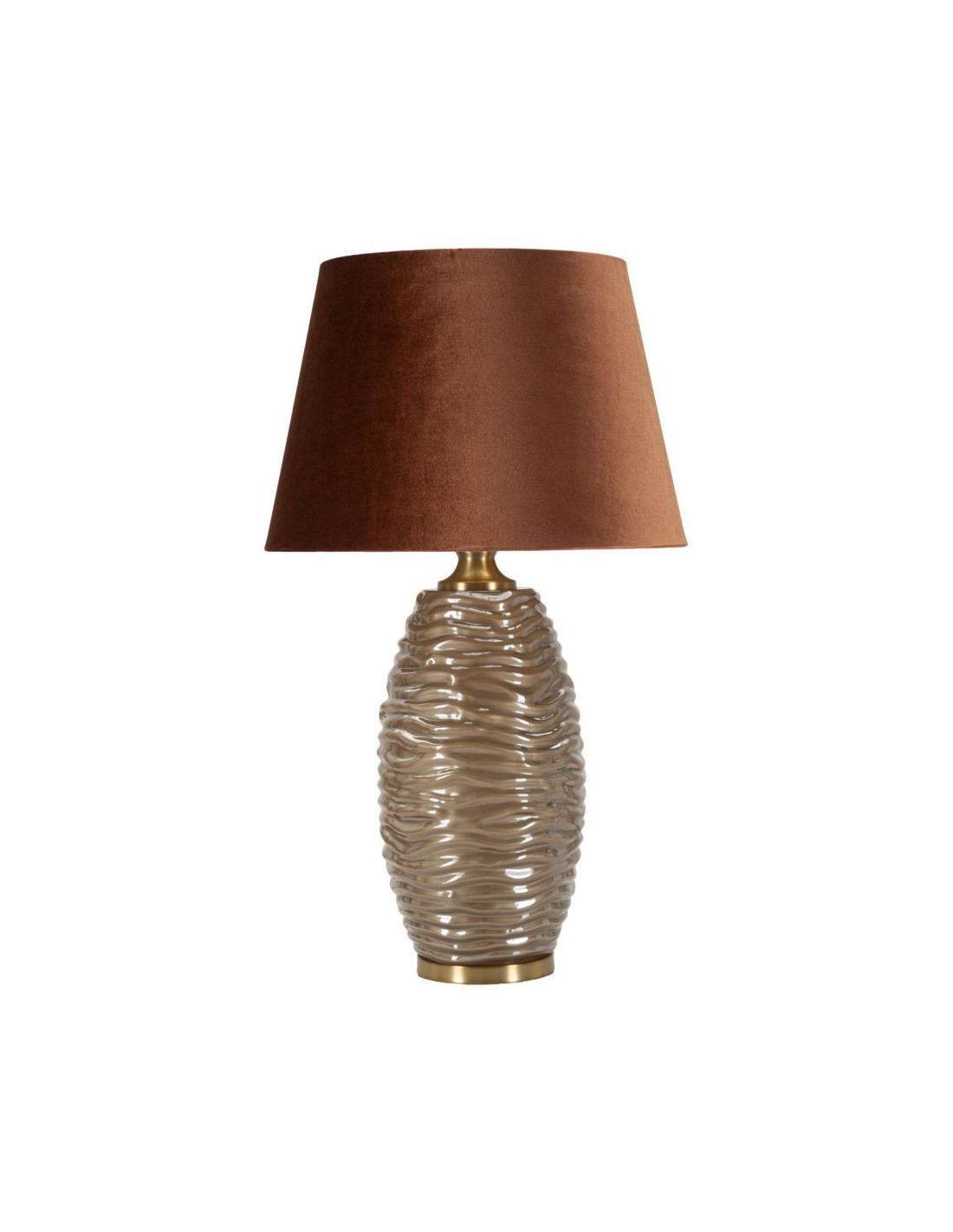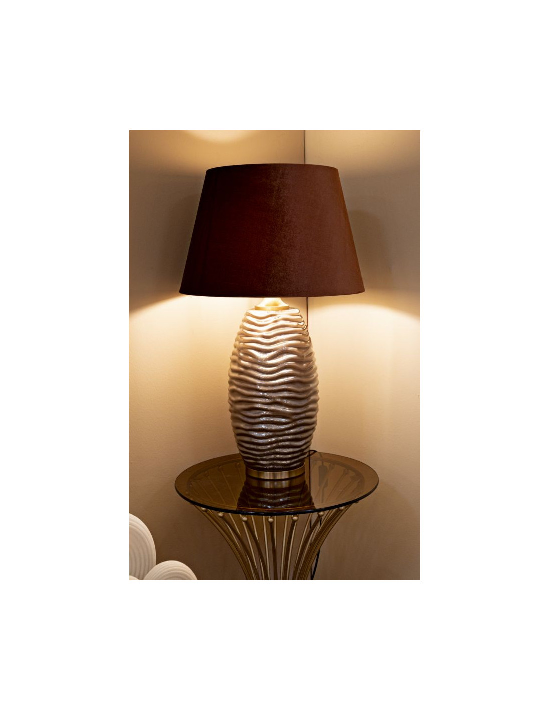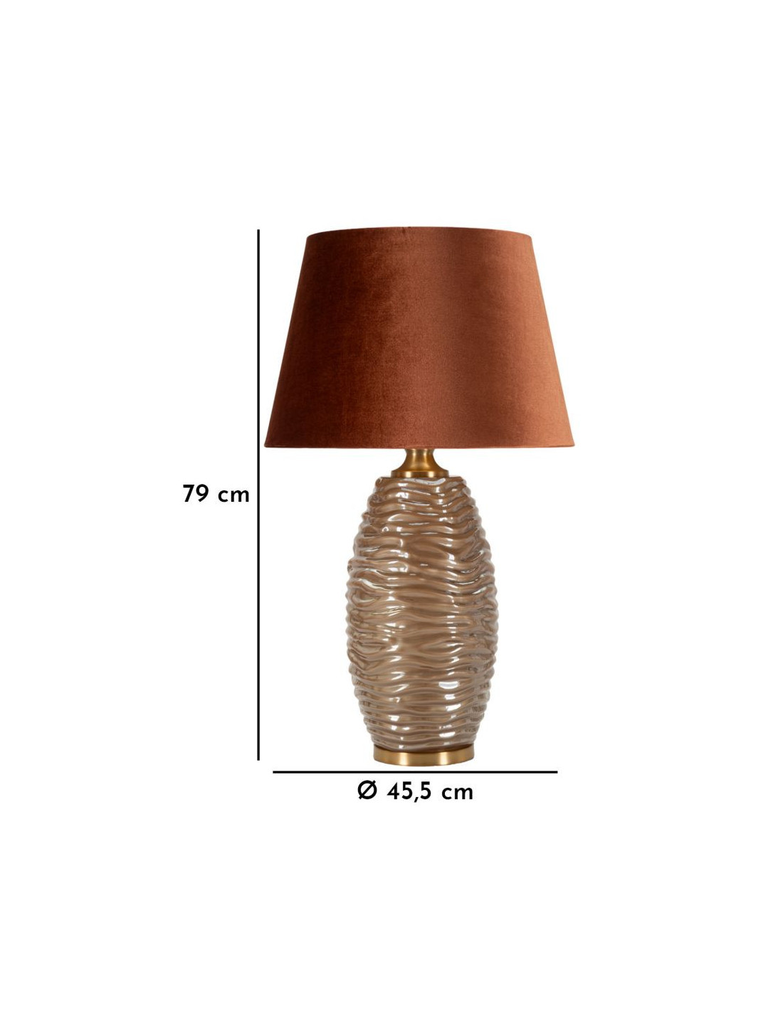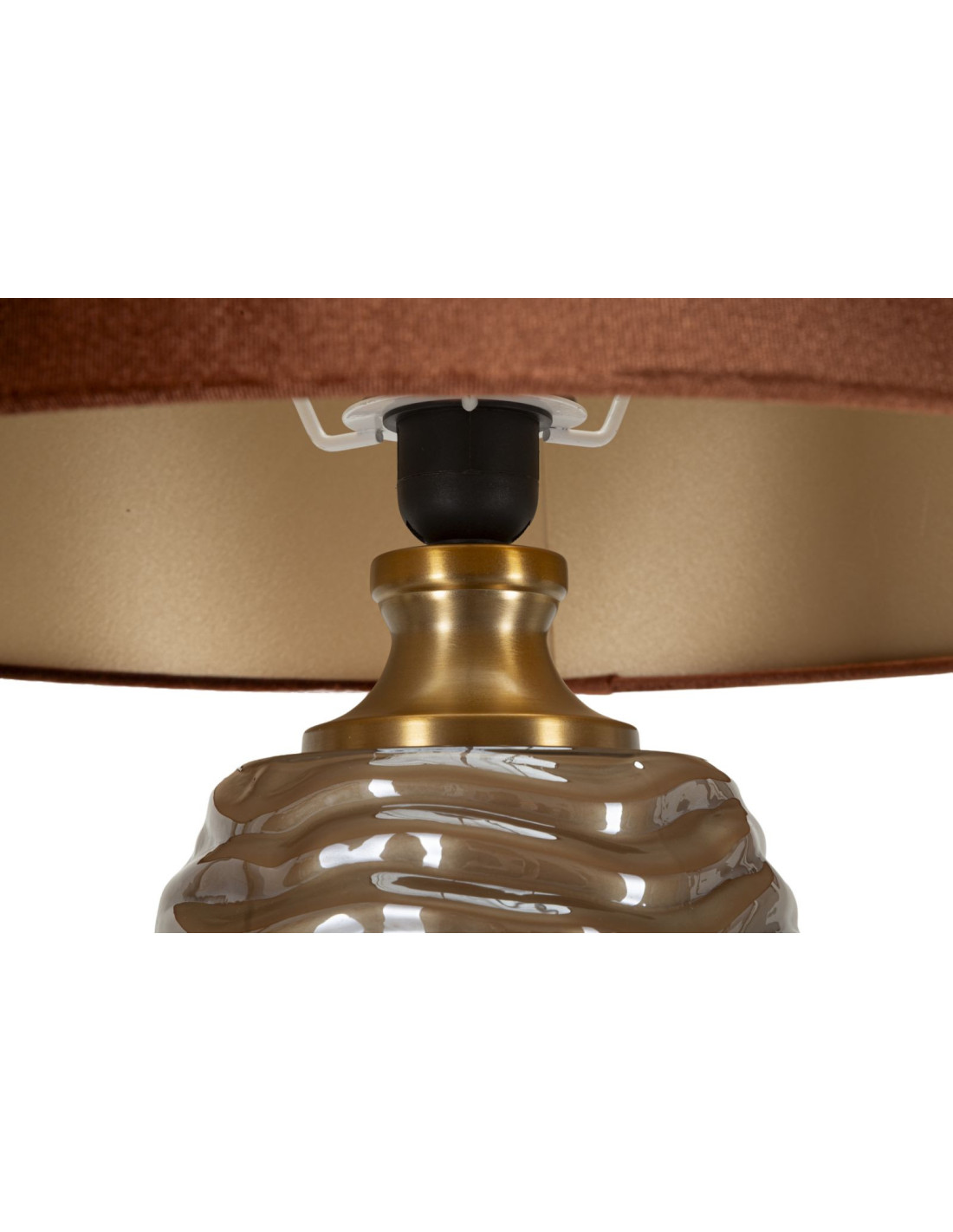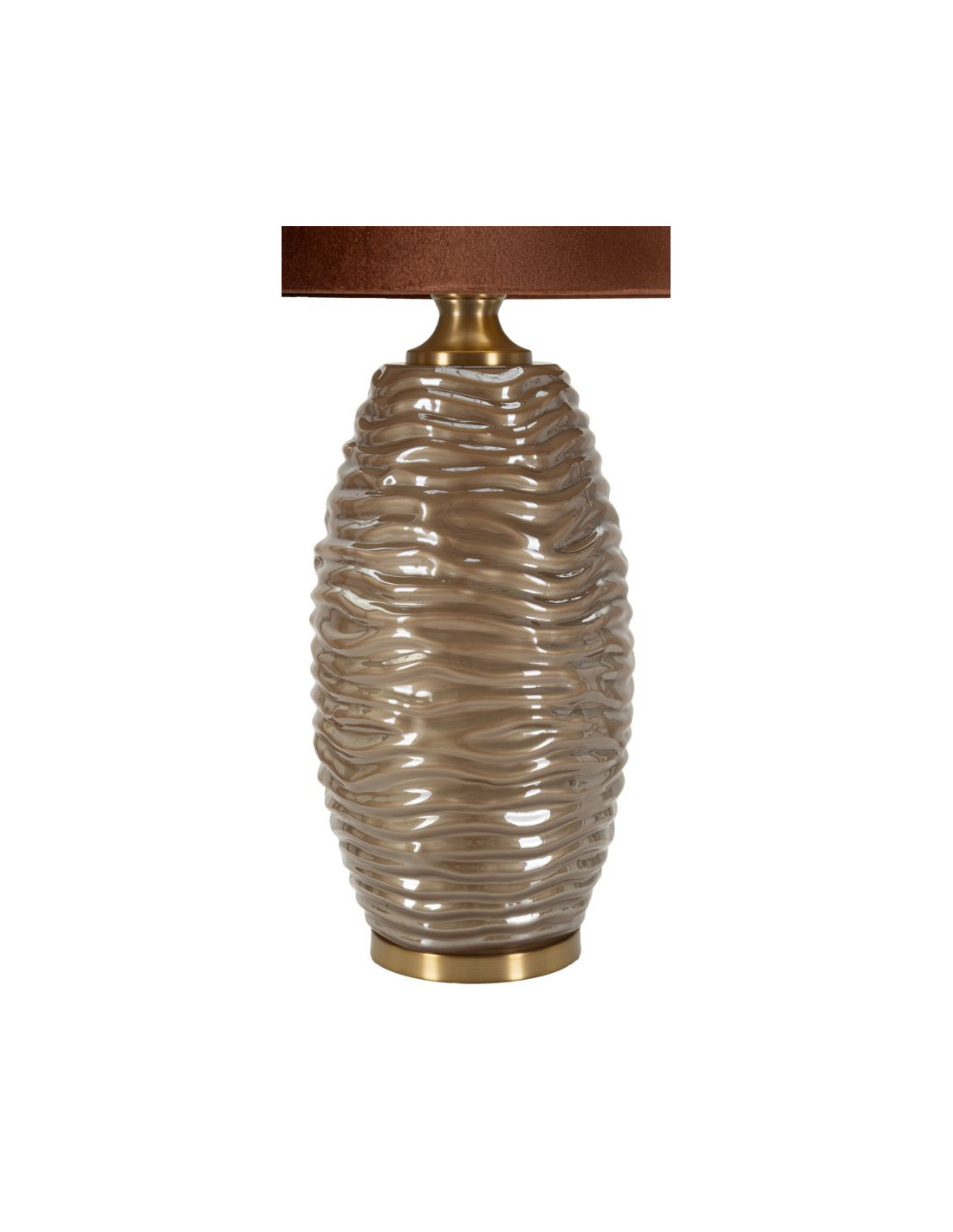 Grande Lampe à poser moderne chic Hauteur 79 cm Verre Tissu Marron Métal Doré Praga
