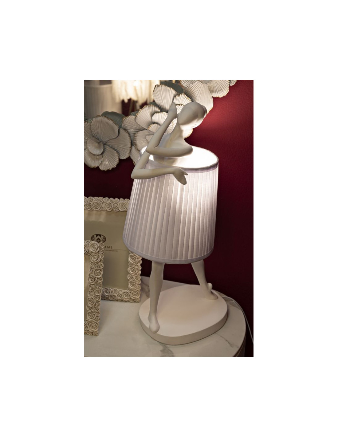 Grande Lampe à poser moderne Danseuse Hauteur 62 cm Résine Tissu Blanc Ballet