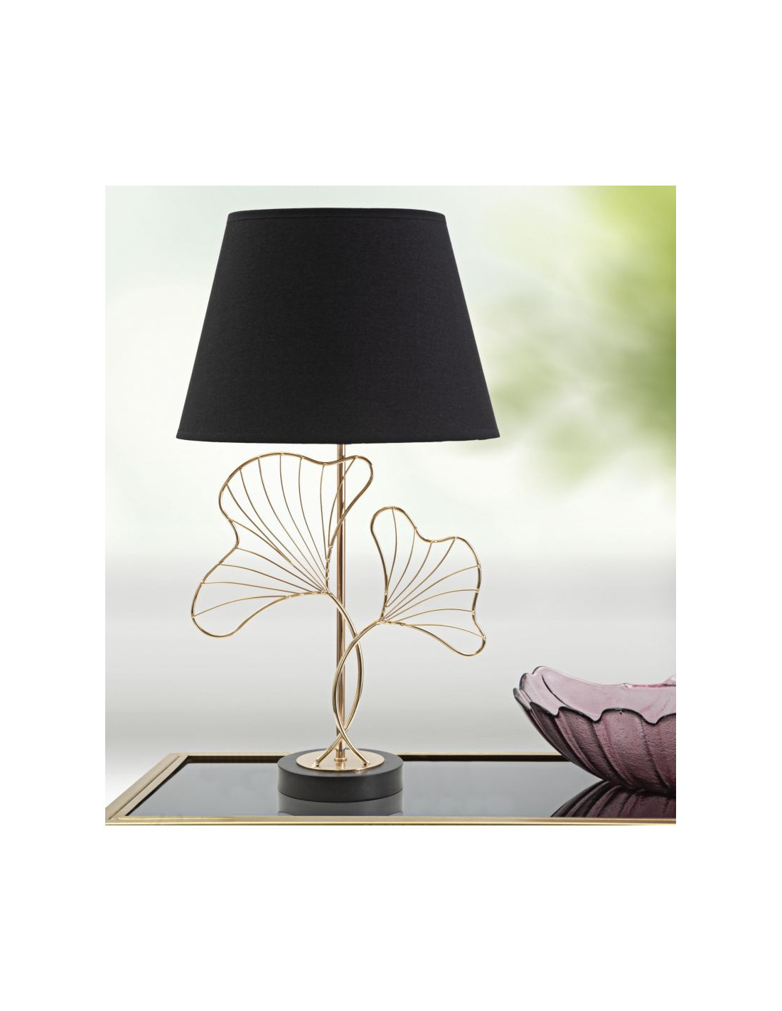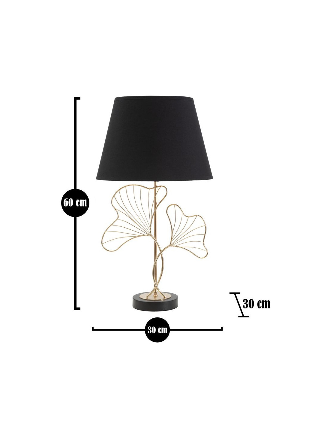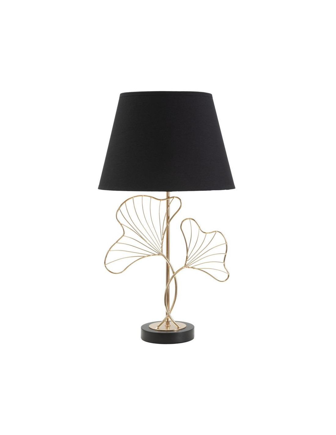 Grande Lampe à poser moderne Feuilles ginkgo Hauteur 60 cm Métal Doré Tissu Noir Leaves