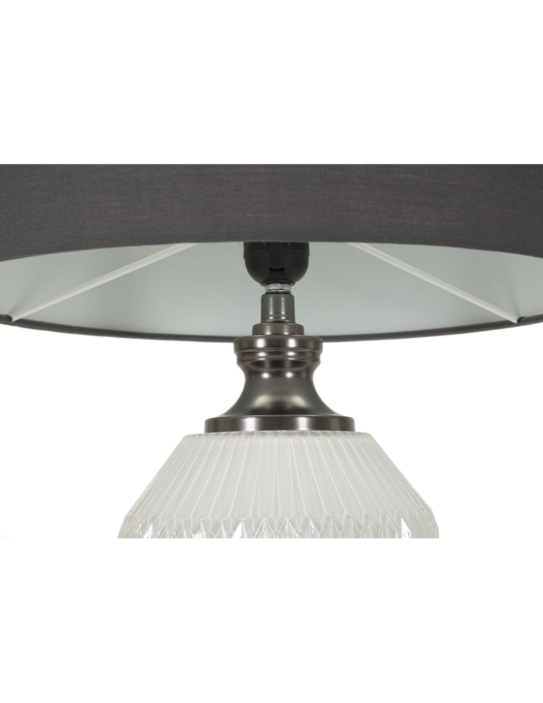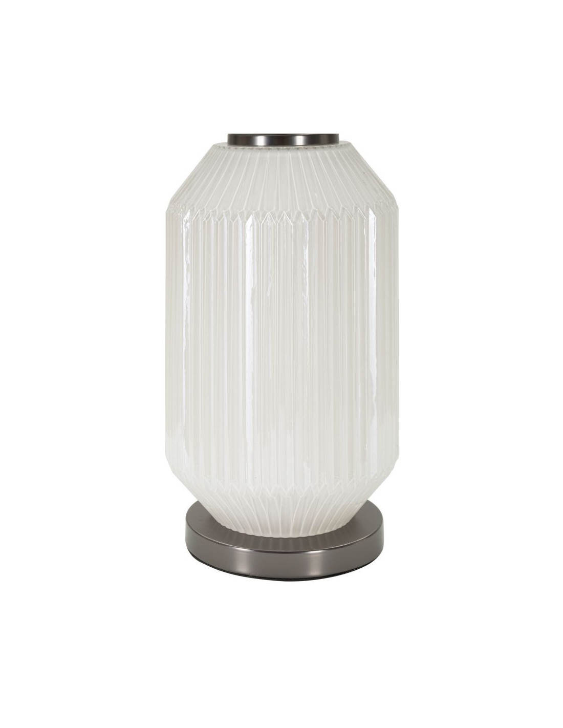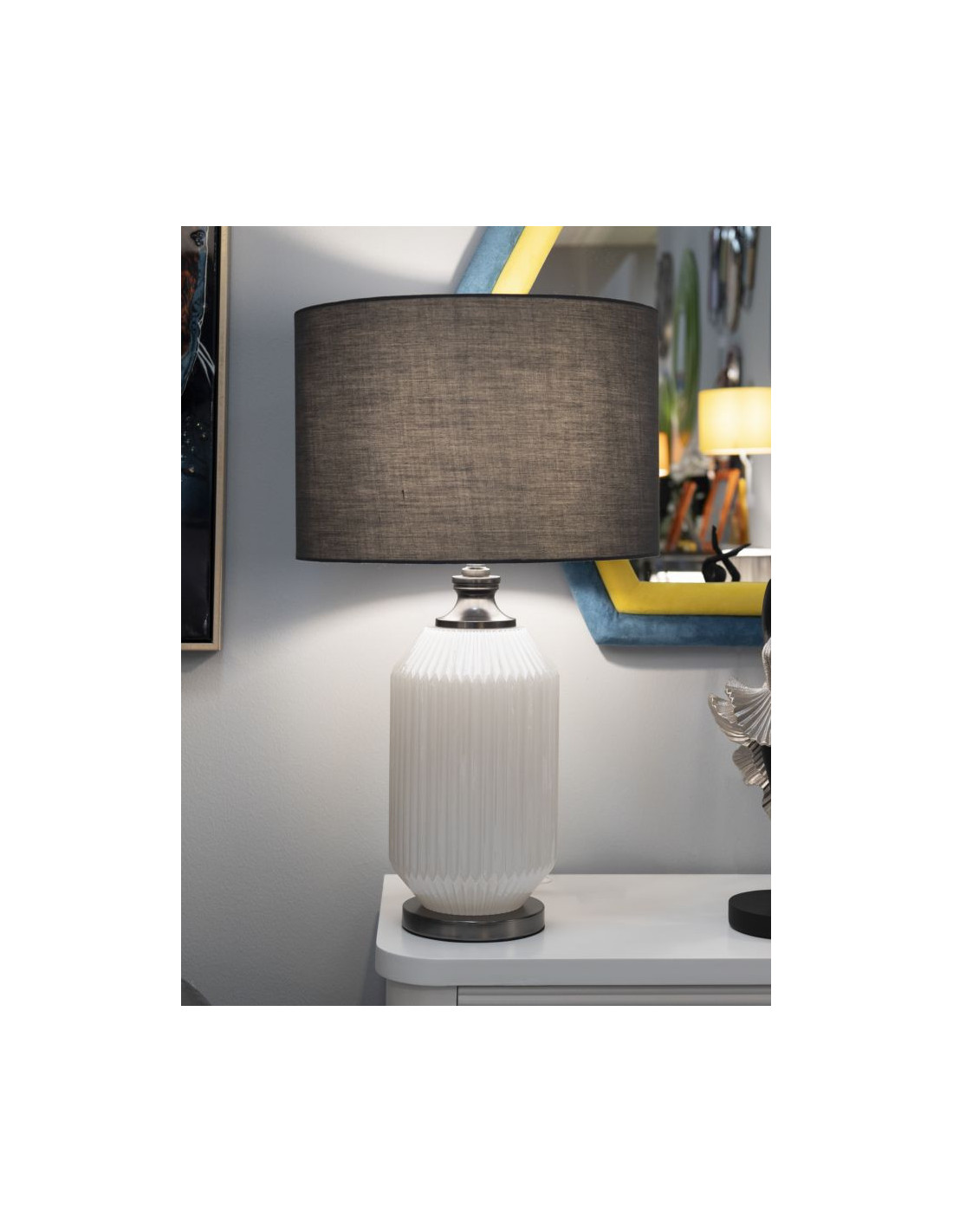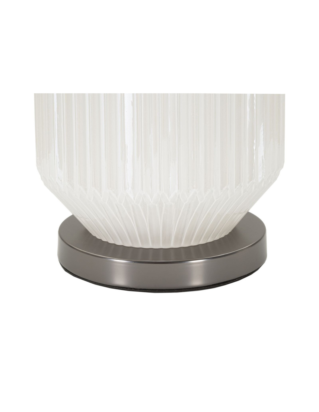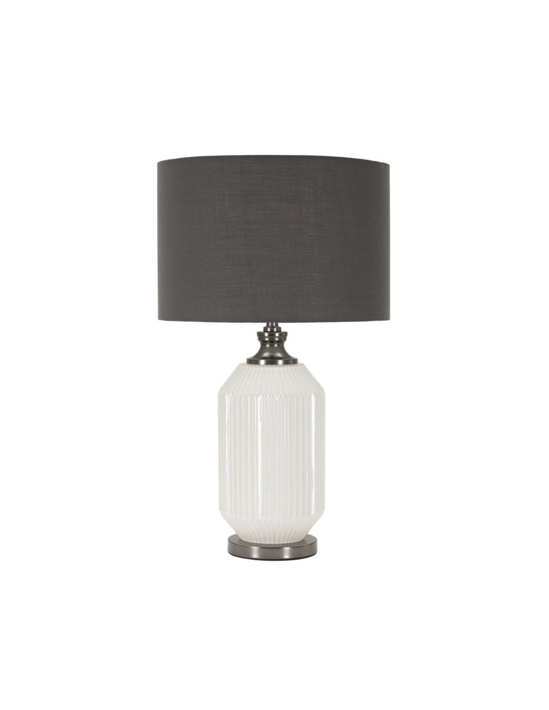 Grande Lampe à poser moderne Hauteur 65 cm en Céramique Blanc Brillant Tissu Gris Métal Argenté Brighty