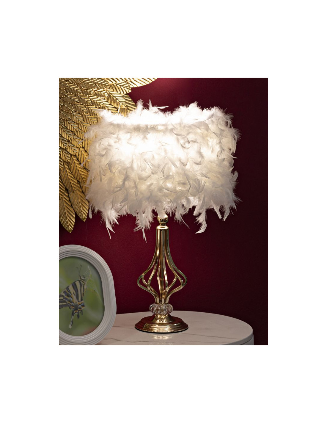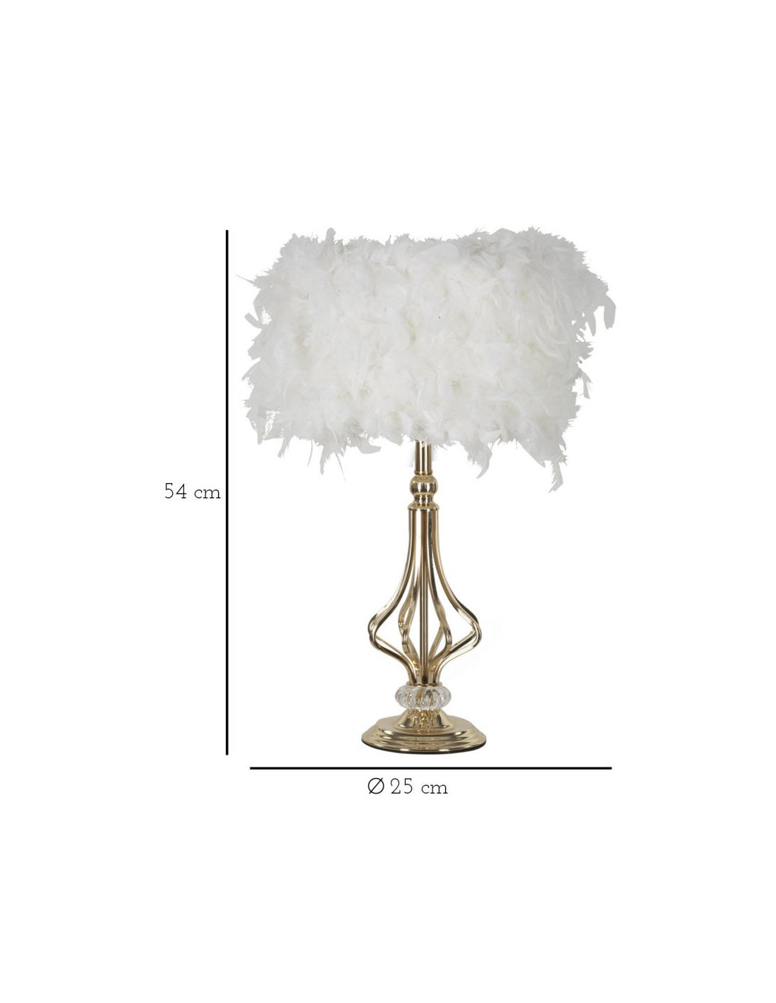 Grande Lampe à poser moderne Plumes Hauteur 54 cm en Tissu Blanc Métal Doré Tarty