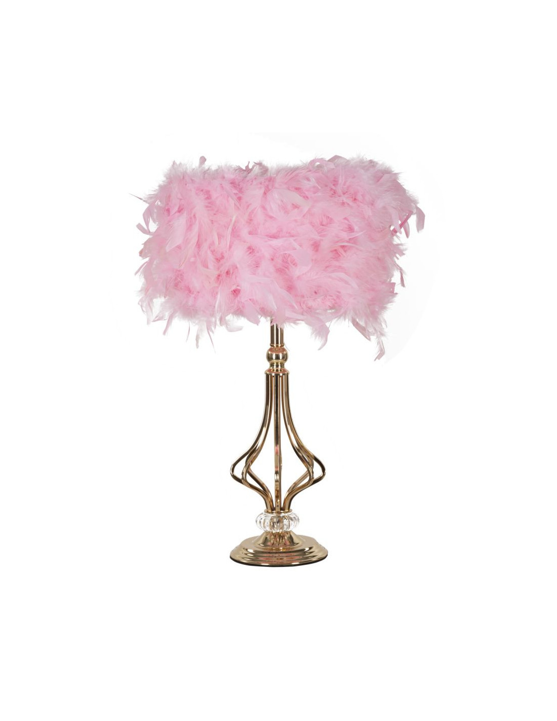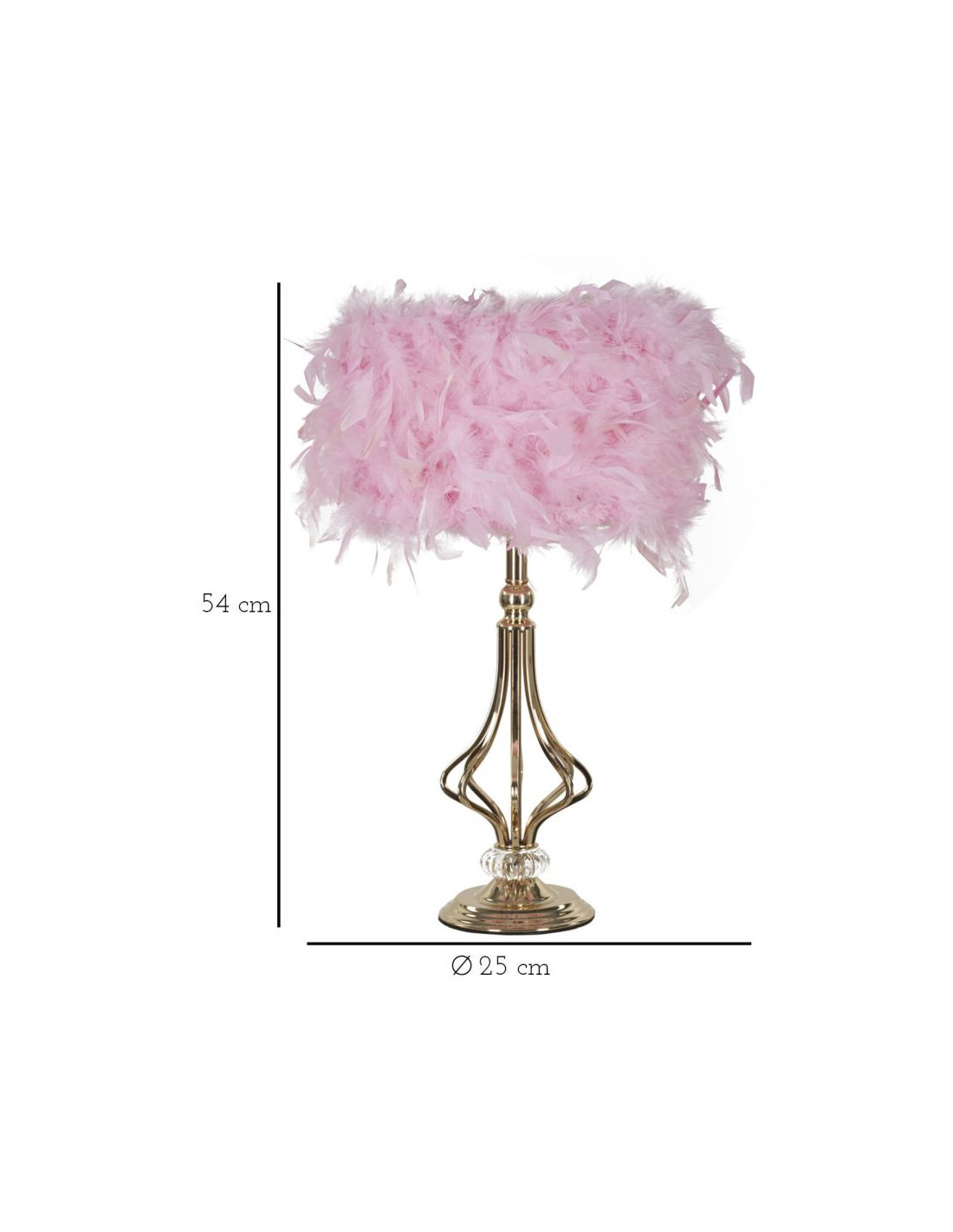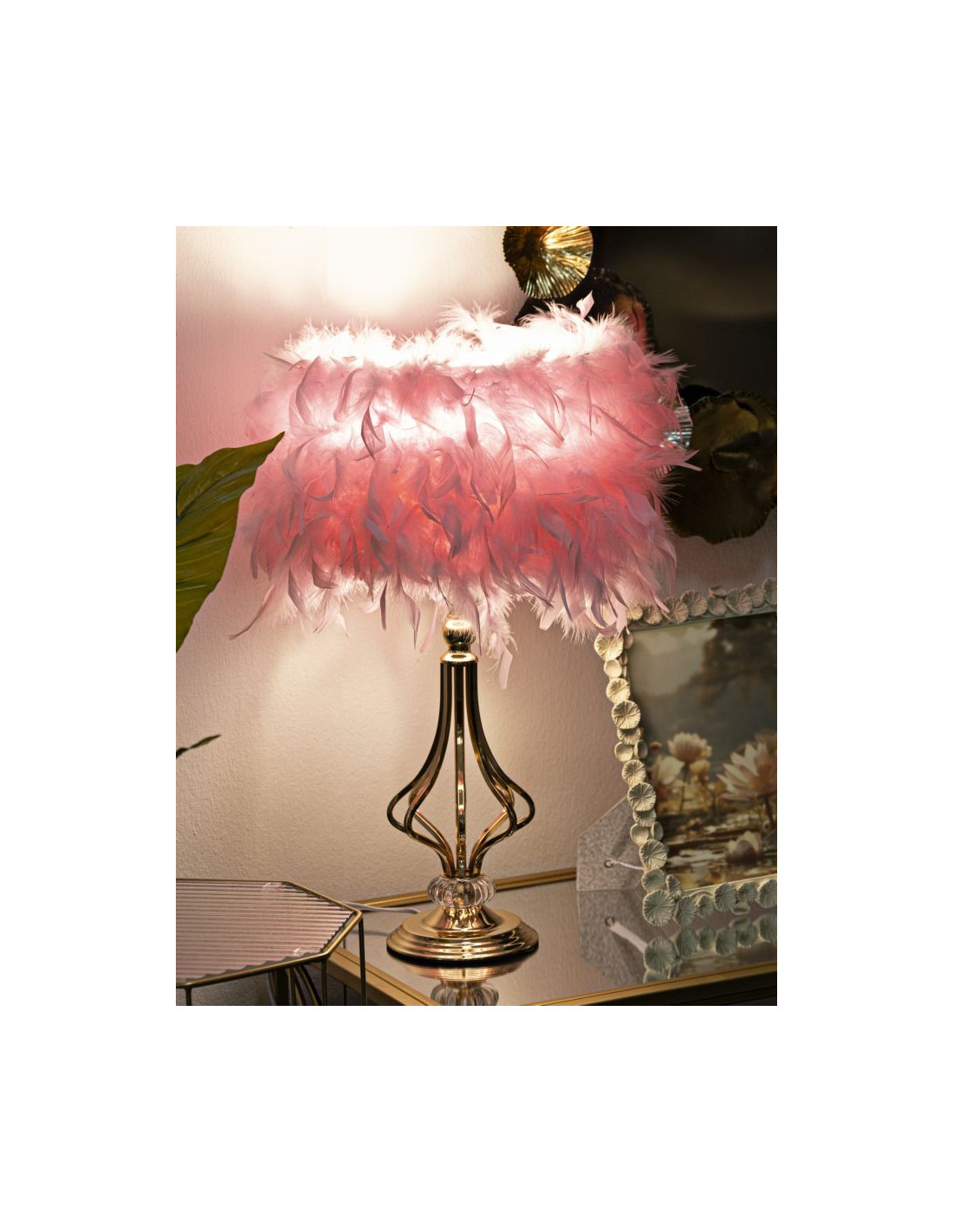 Grande Lampe à poser moderne Plumes Hauteur 54 cm en Tissu Rose Métal Doré Tarty