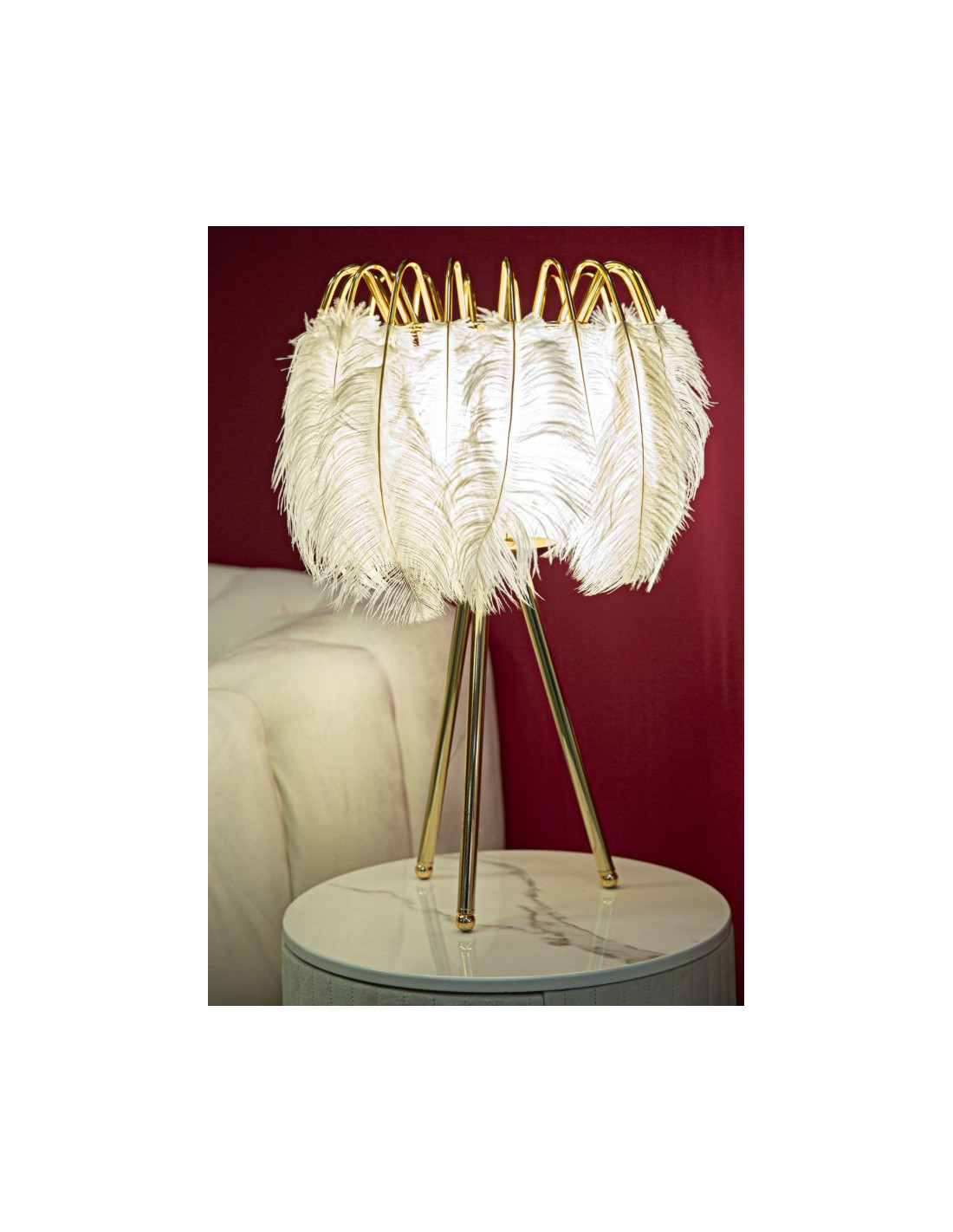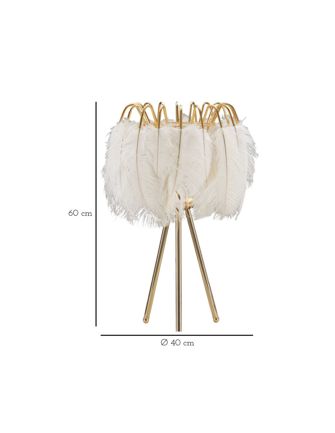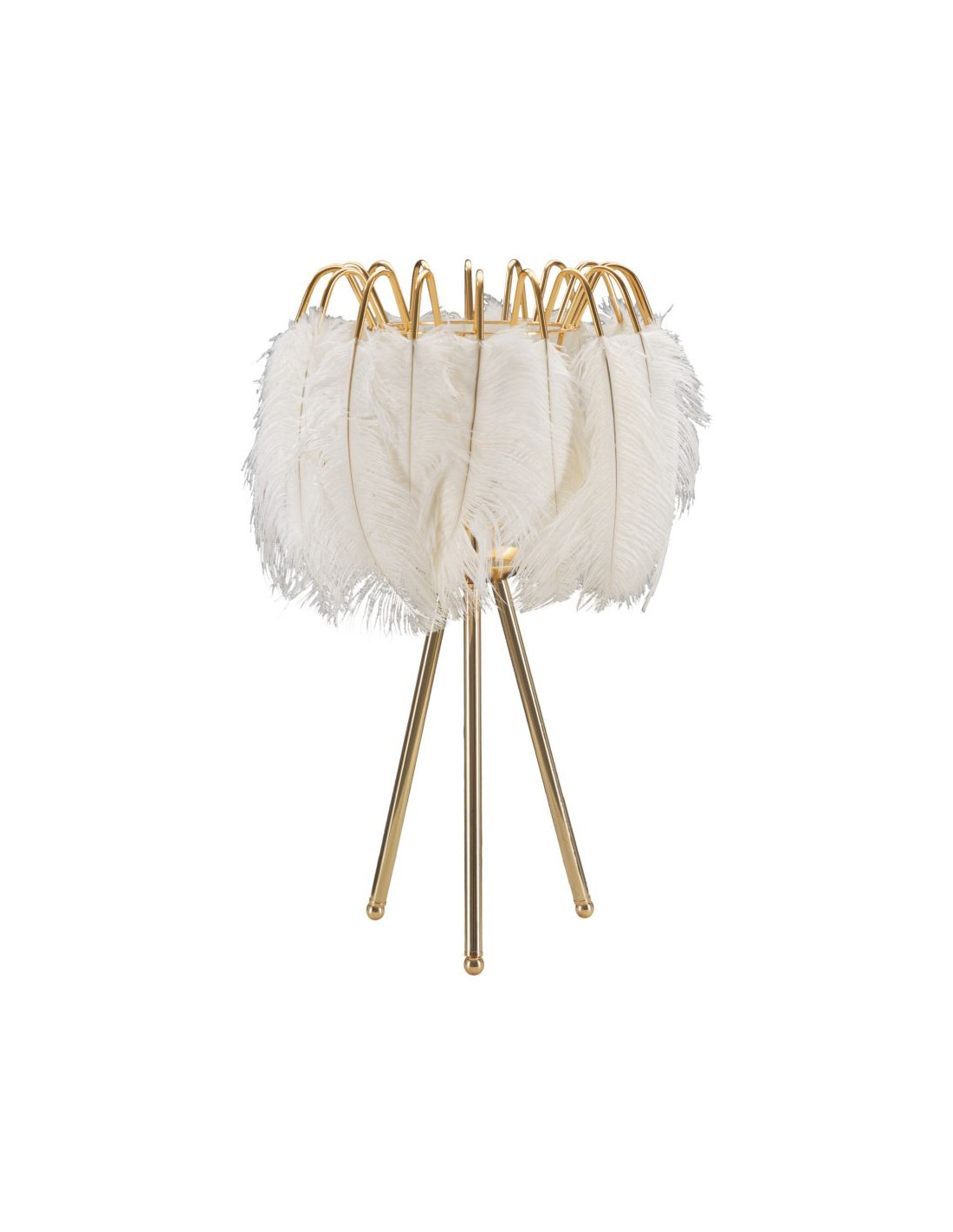 Grande Lampe à poser moderne Plumes Hauteur 60 cm Métal Doré Polyuréthane Blanc Feather
