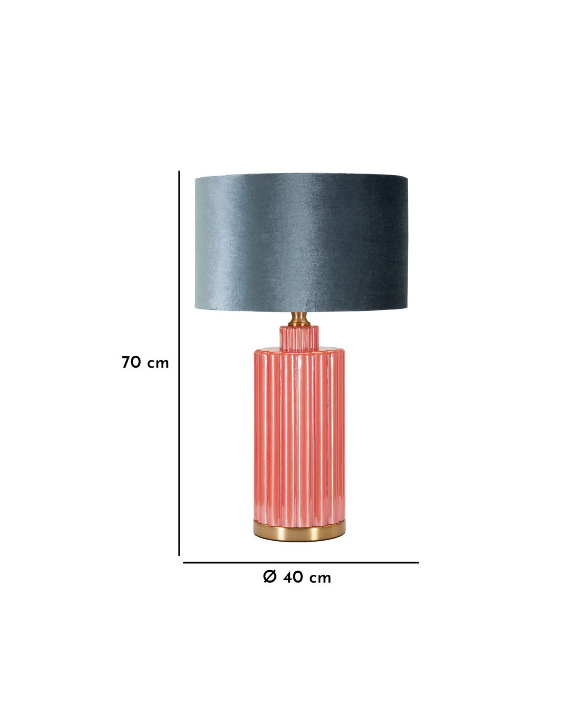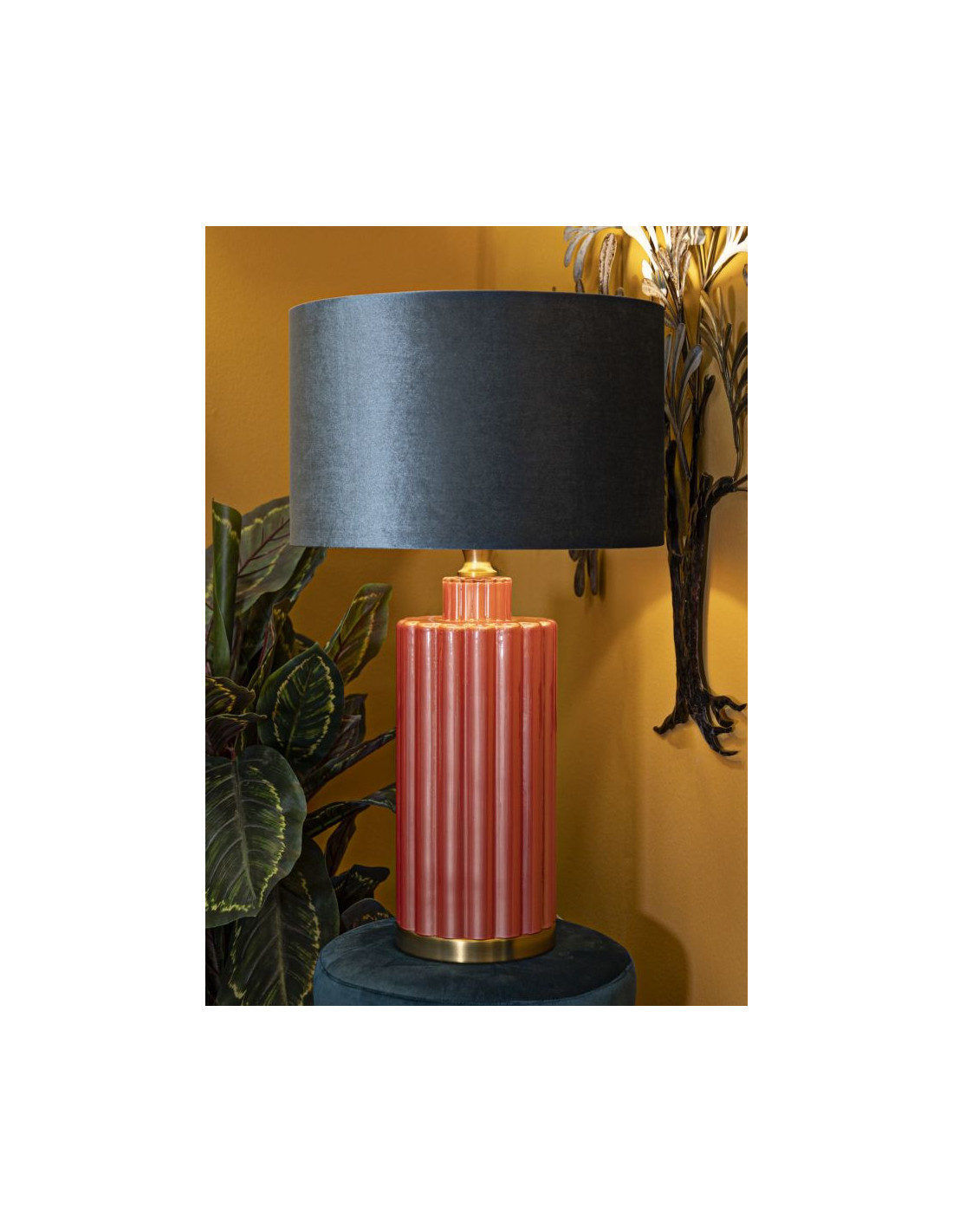 Grande Lampe à poser moderne tour Hauteur 70 cm en Verre Rouge Tissu Bleu Métal Doré Helene