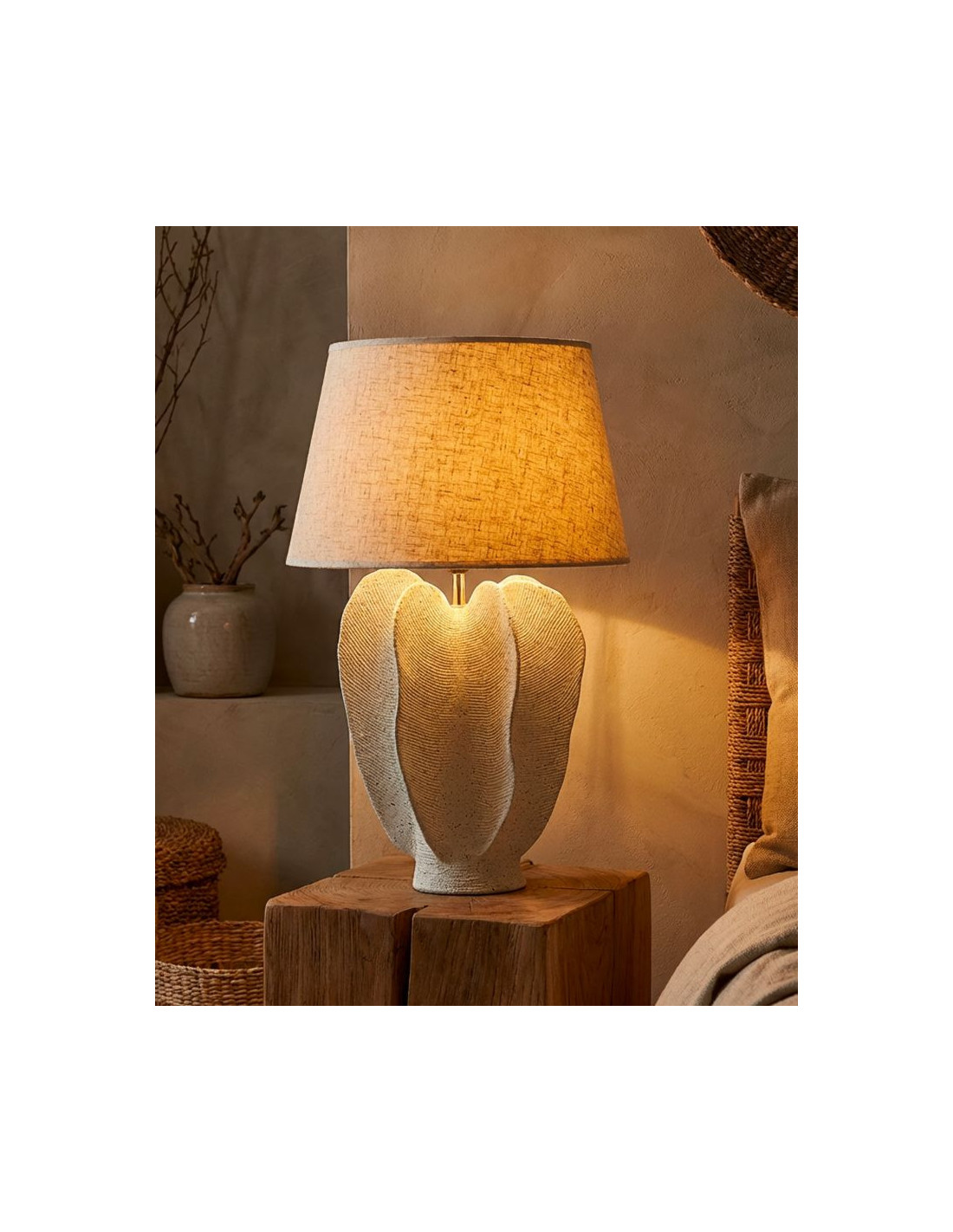 Grande Lampe à poser organique Wabi-sabi Hauteur 63 cm Résine Blanc Moucheté Tissu Beige Ester