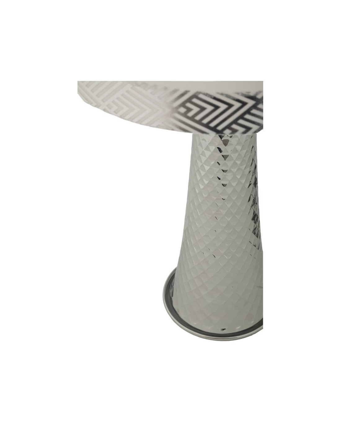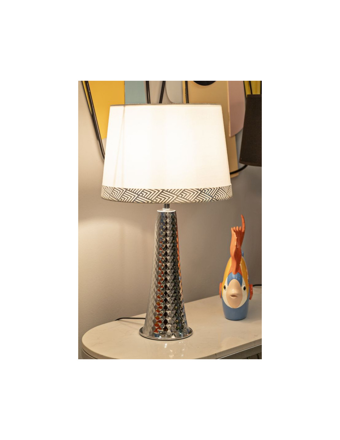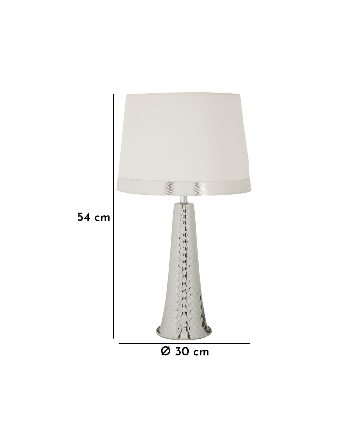 Grande Lampe à poser originale chic Hauteur 54 cm Métal Argenté Tissu Blanc Tower