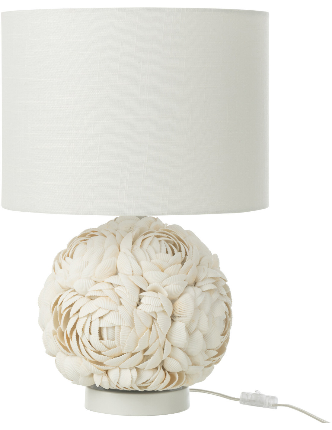 Grande Lampe à poser originale Hauteur 50 cm en Coquillage Tissu Blanc Mila