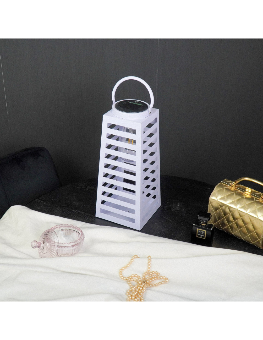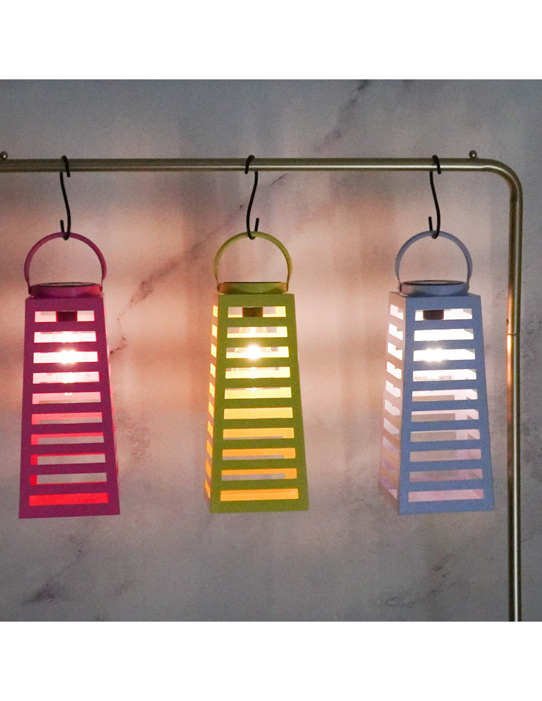 Grande Lampe solaire Lanterne à suspendre Hauteur 32 cm Métal Lilas Summer