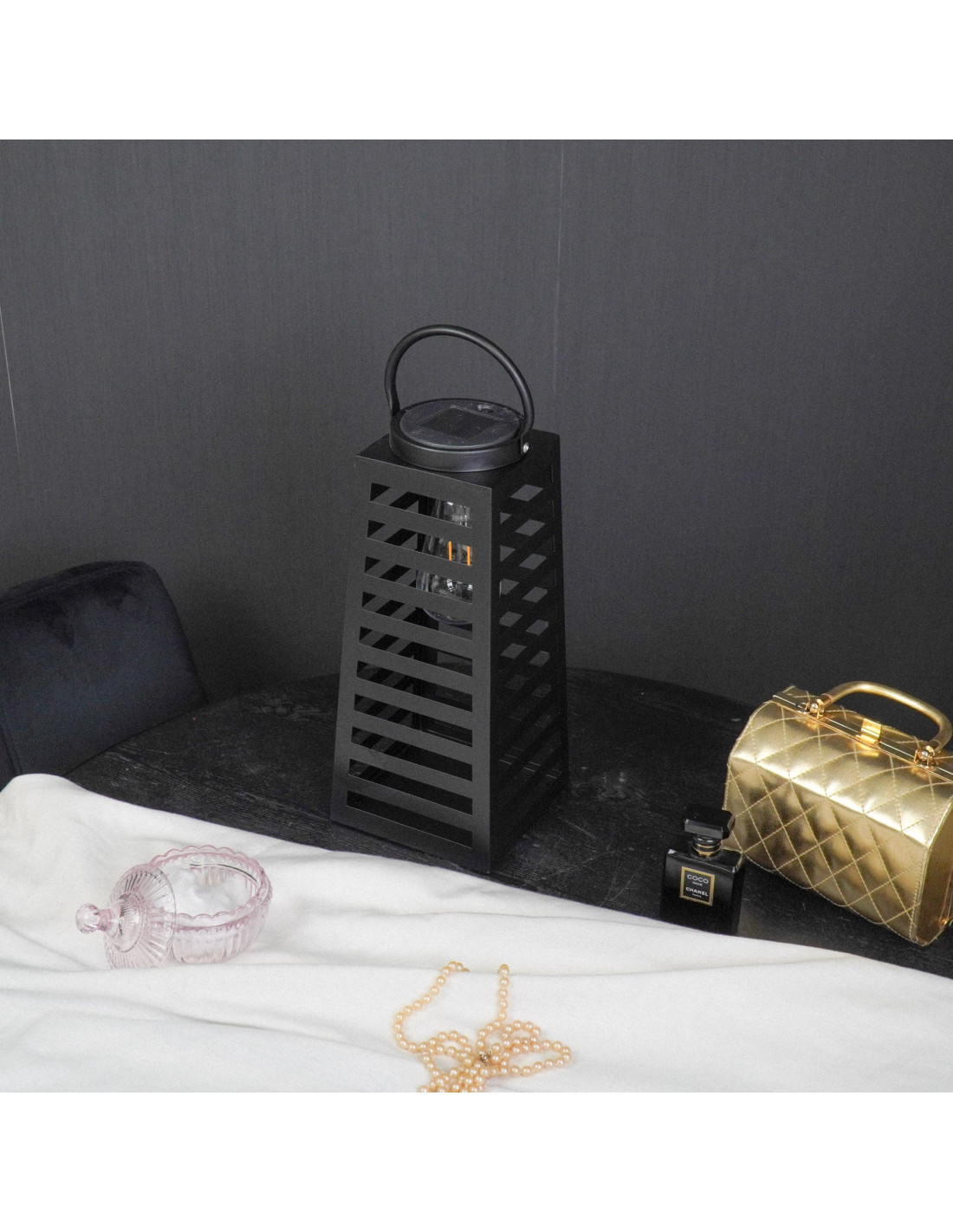 Grande Lampe solaire Lanterne à suspendre Hauteur 32 cm Métal Noir Summer