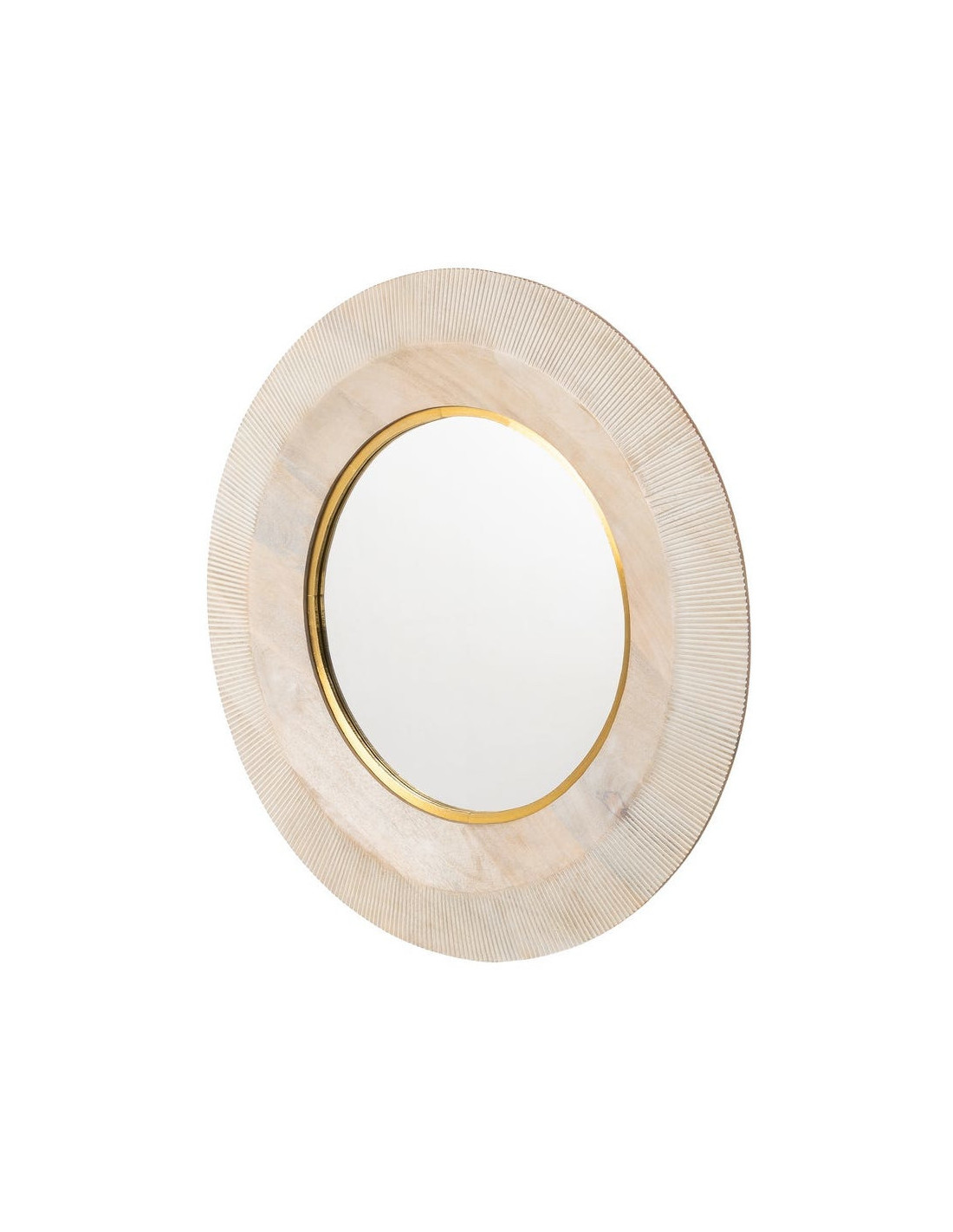 Grande Miroir mural design chic Rond 90x90 Bois de manguier Naturel Métal Doré Albéa