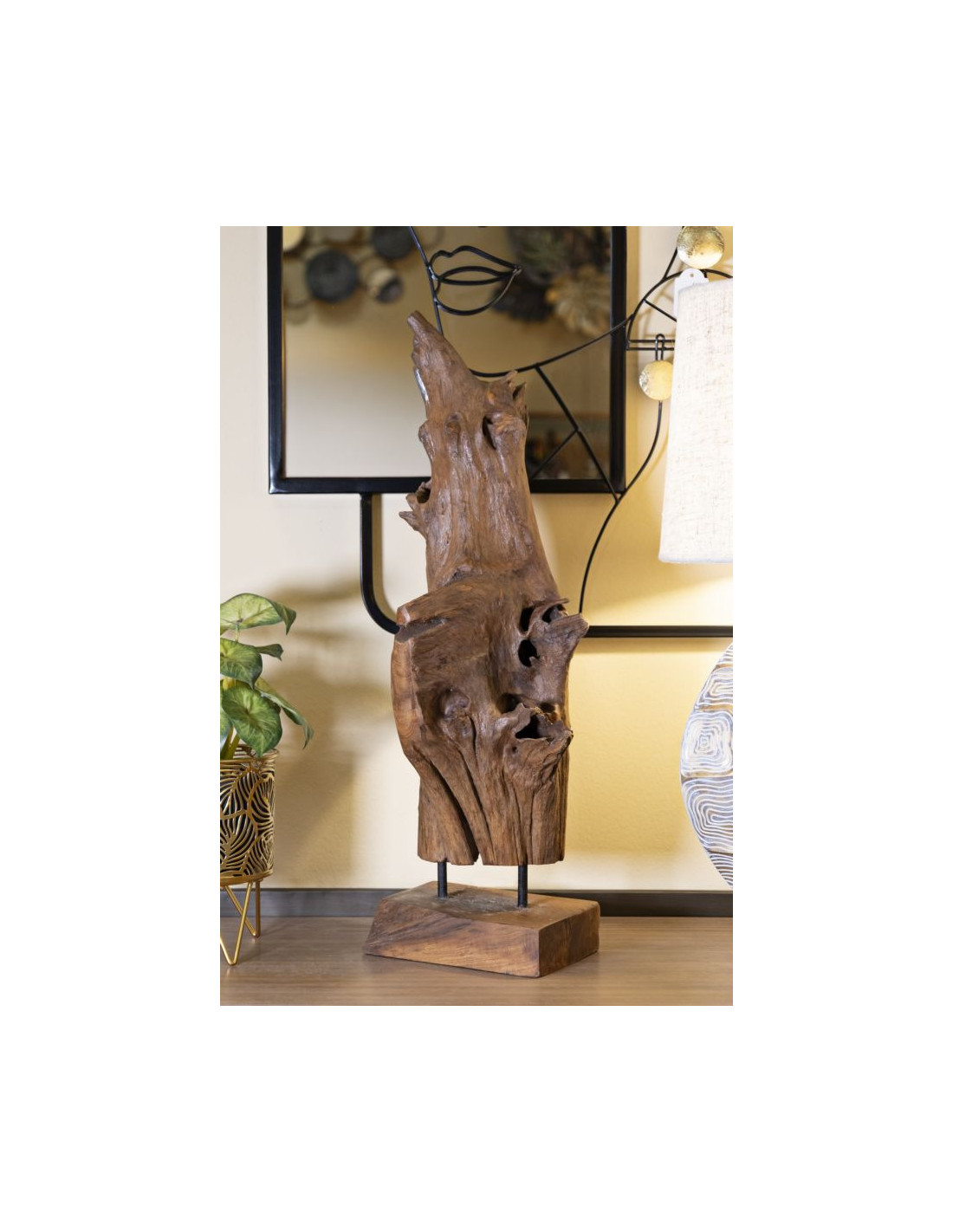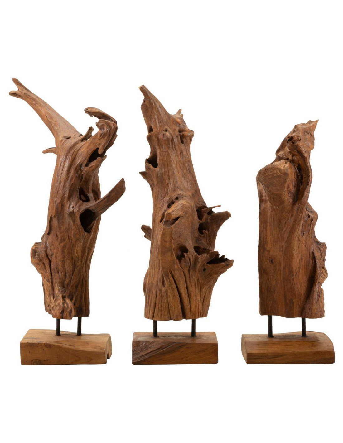 Grande Sculpture artisanale ethnique sur pied Hauteur 64 cm en Bois de teck recyclé Marron Akar