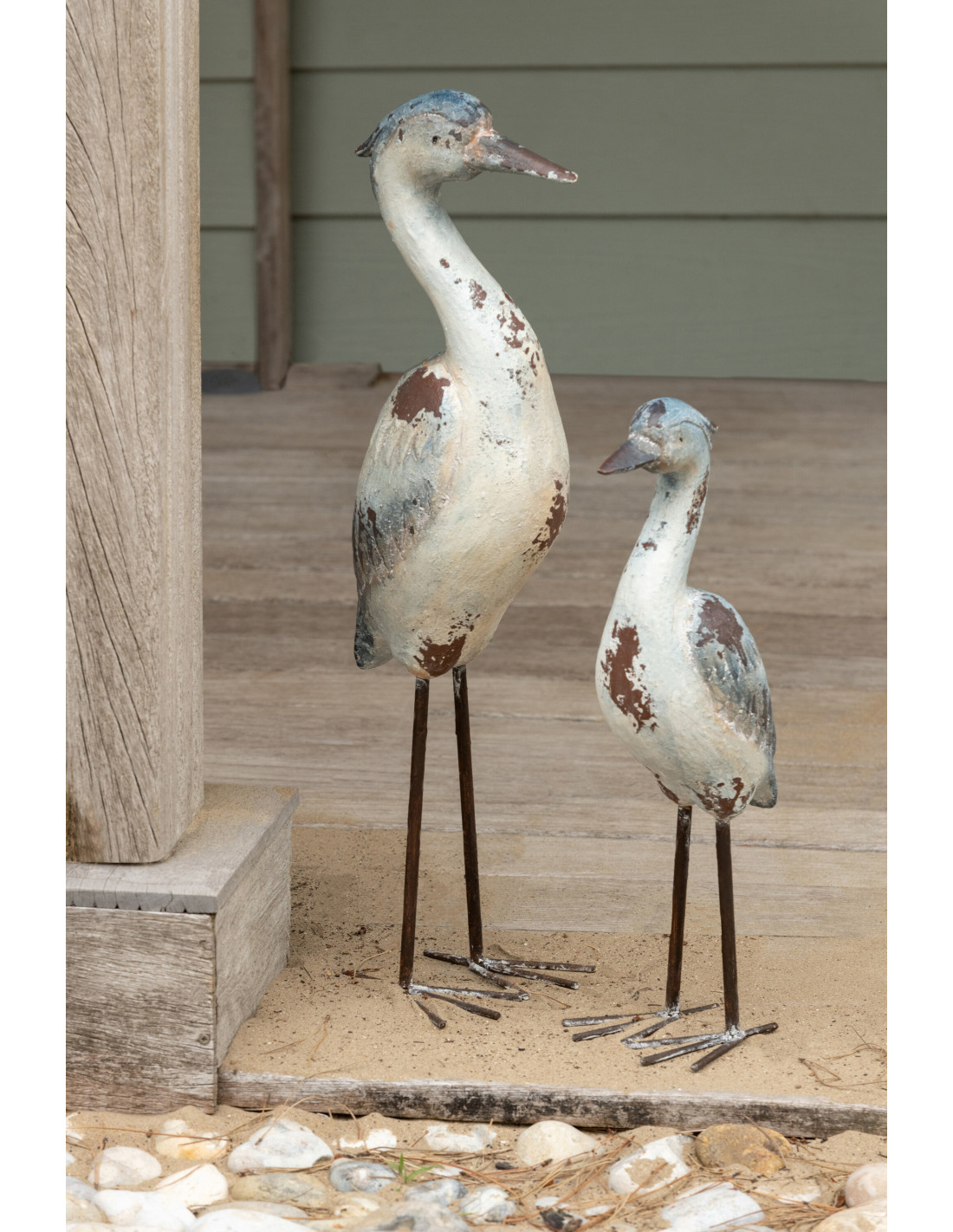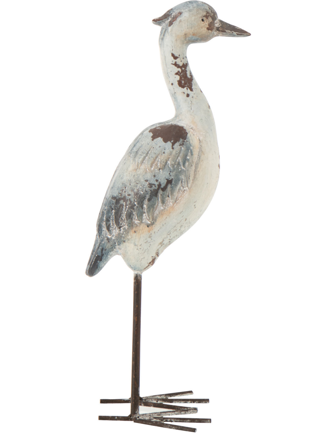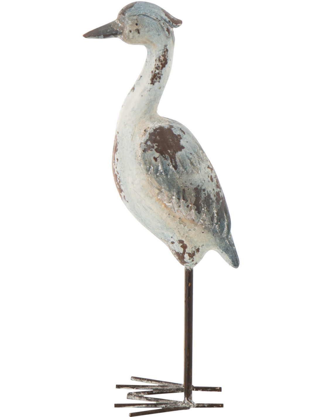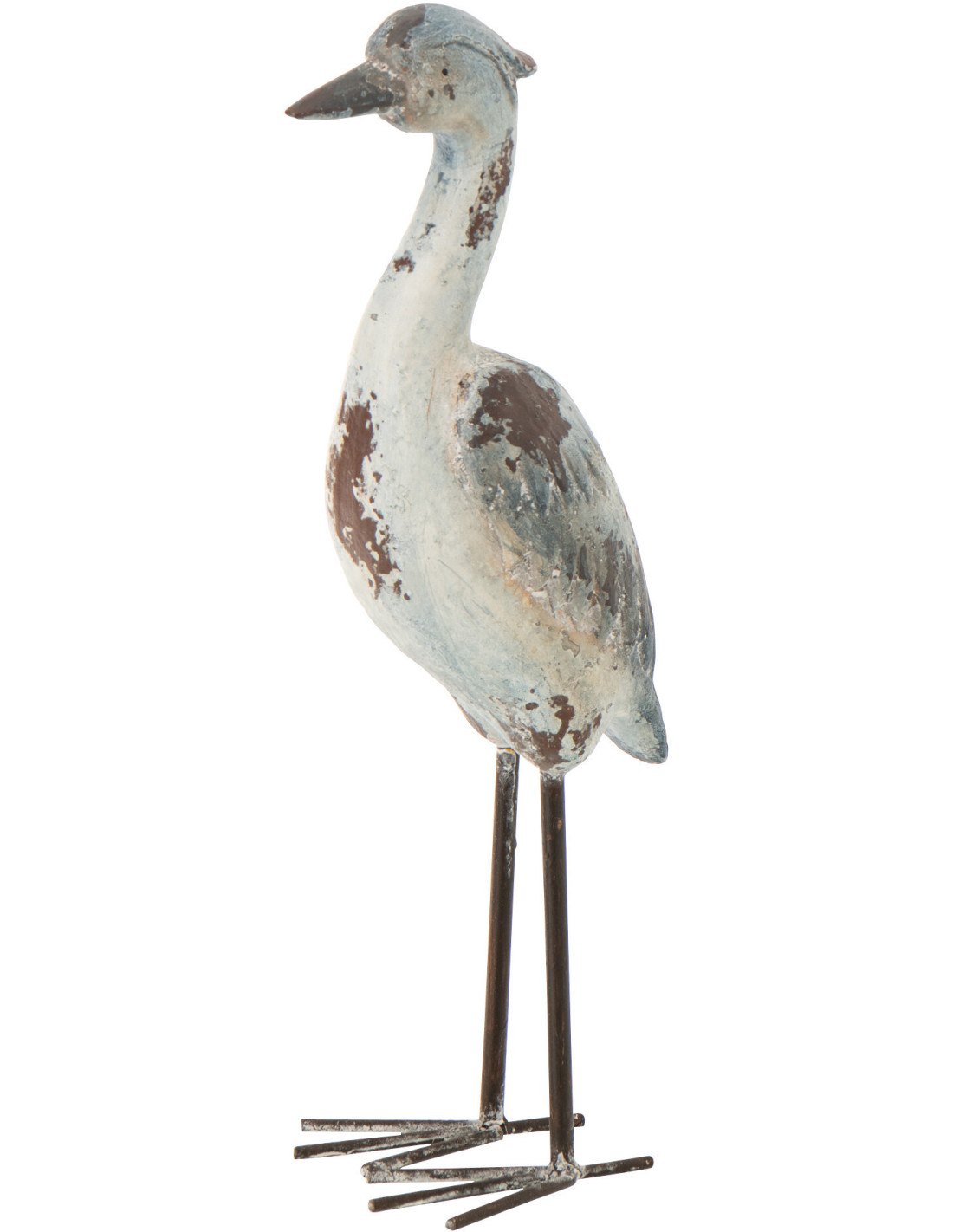 Grande Sculpture déco extérieur Héron H 51 cm Oxyde de magnésium Bleu Blanc Vieilli Noravel