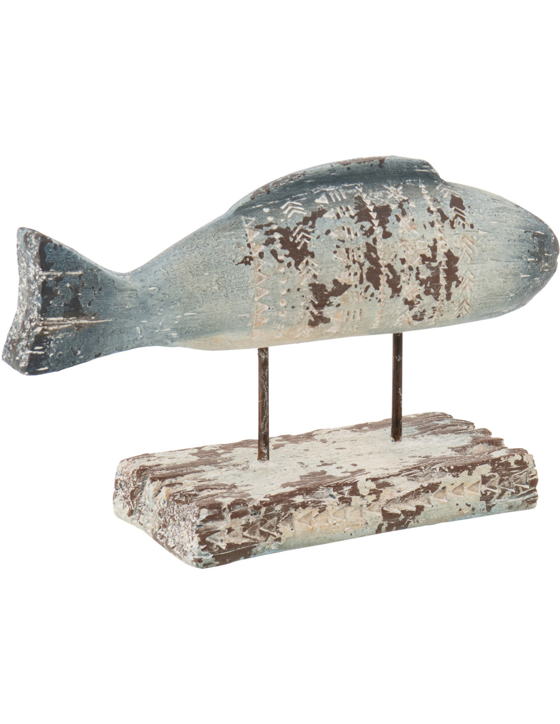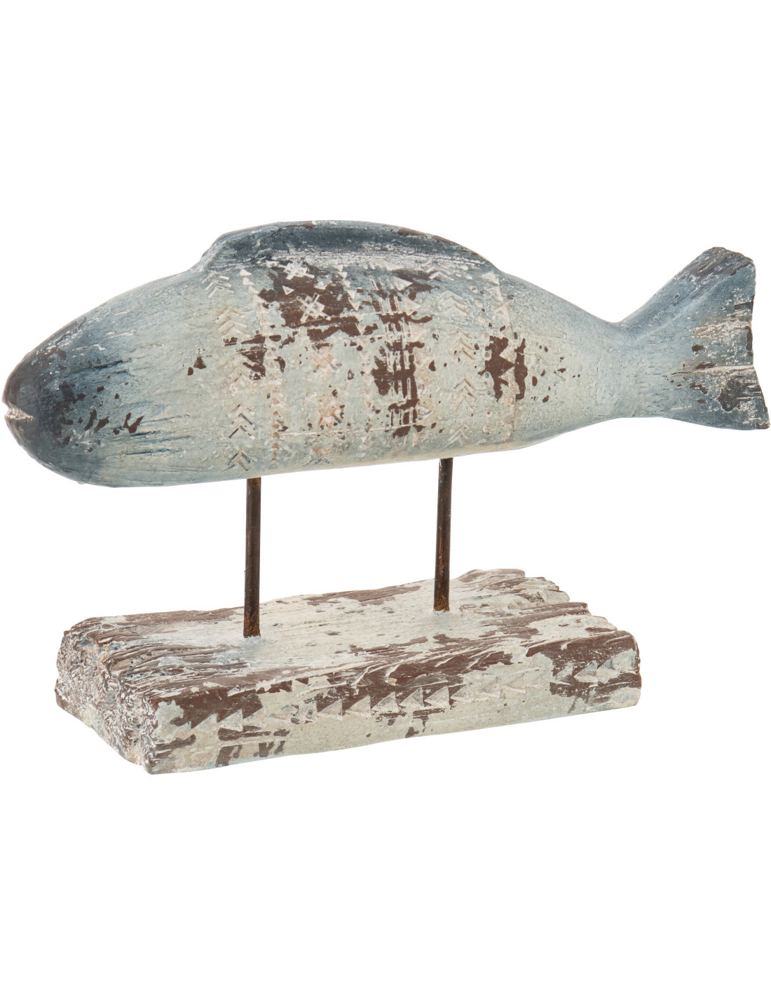 Grande Sculpture déco extérieur Poisson sur pied 52 cm Oxyde de magnésium Bleu Blanc Vieilli Noravel