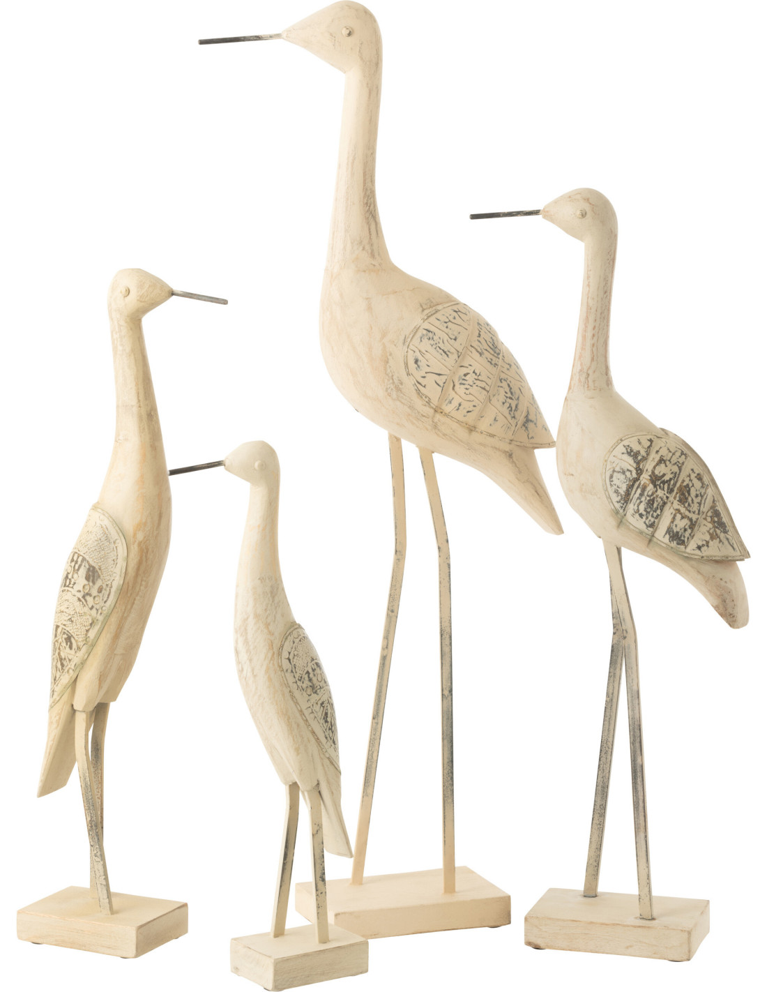 Grande Sculpture déco sur pied Oiseau en Bois de manguier Métal Beige Pona - 1