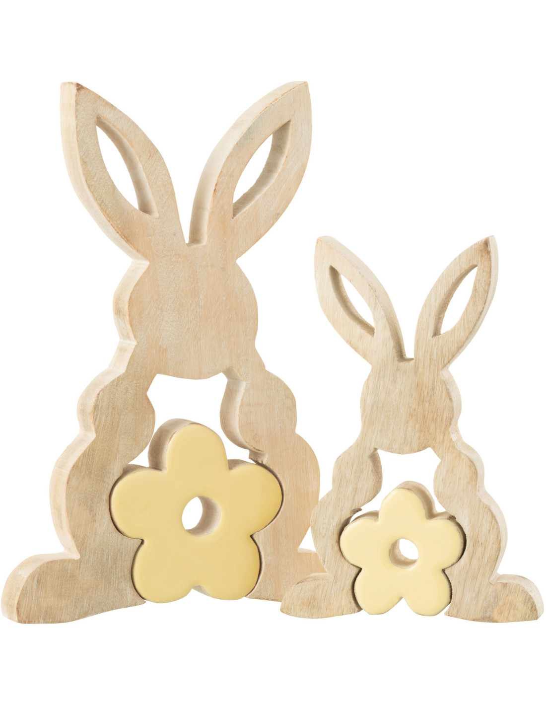 Grande Sculpture moderne Puzzle Lapin Fleur Hauteur 25 cm en Bois Naturel Jaune Crayne