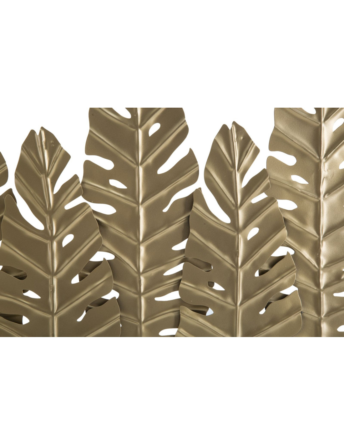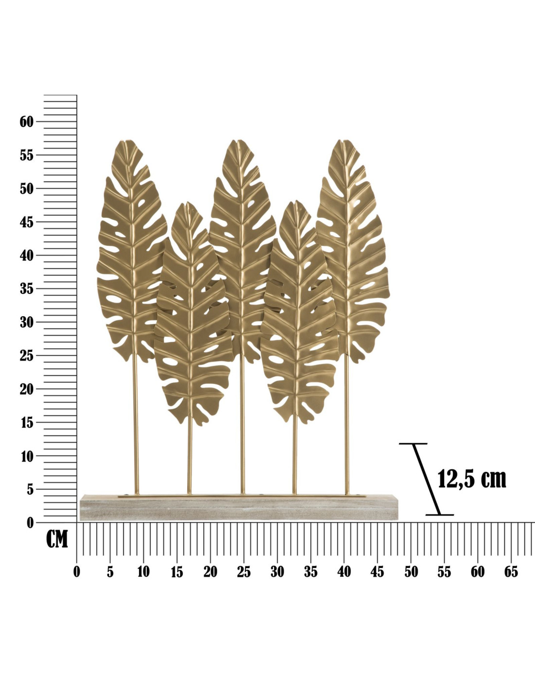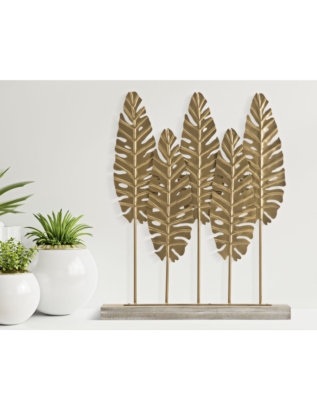 Grande Sculpture moderne sur pied 5 feuilles Hauteur 57 cm en Métal Doré Bois Naturel Nalen
