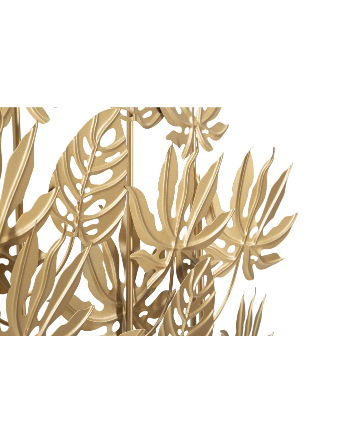 Grande Sculpture moderne sur pied Feuilles tropicales Hauteur 57 cm en Métal Doré Bois Naturel Ceril
