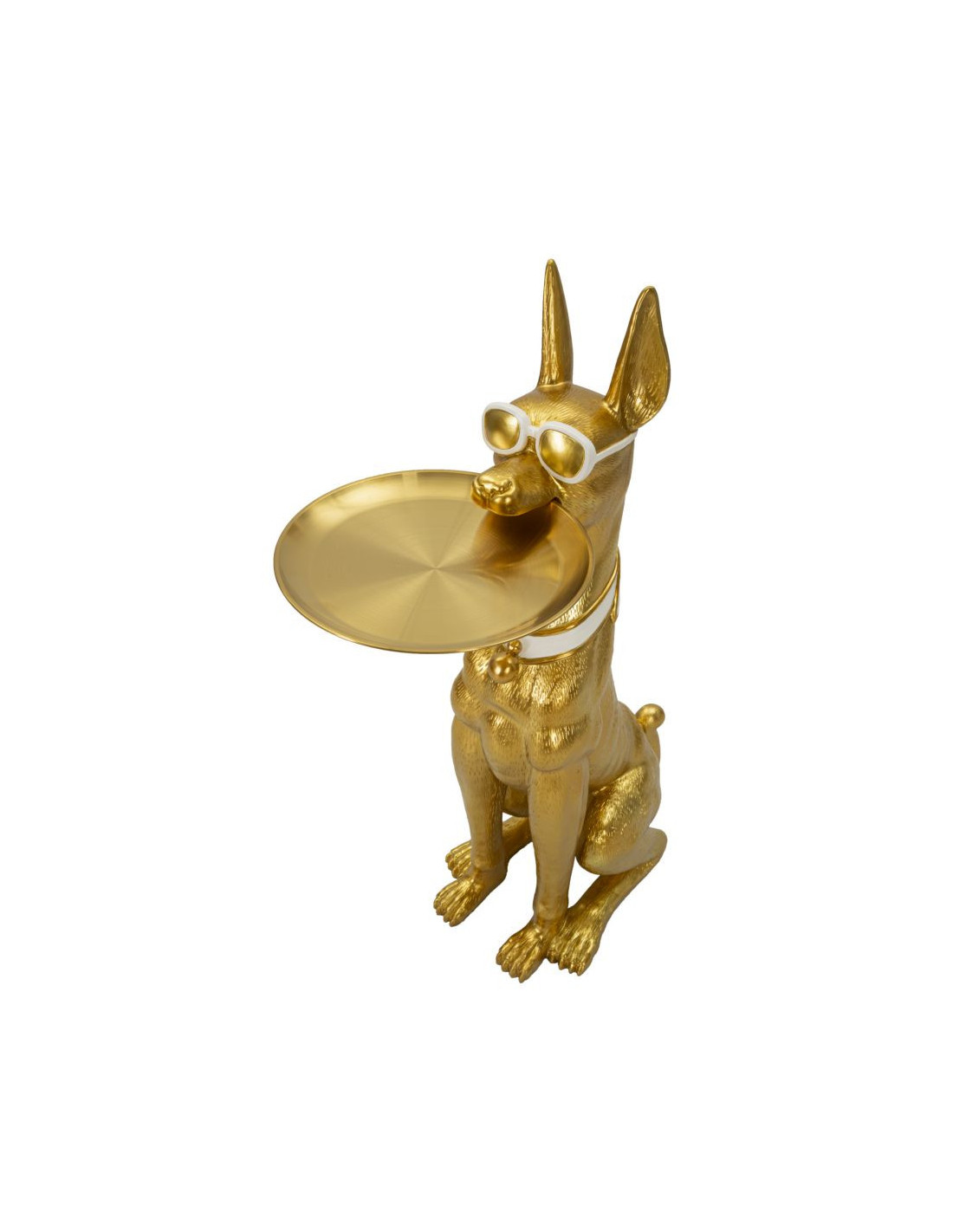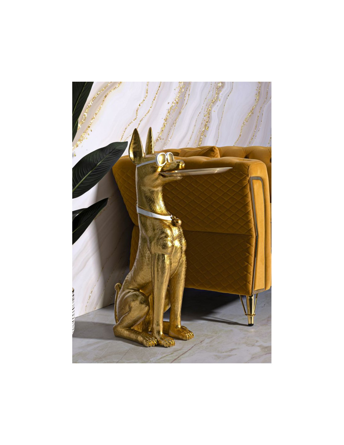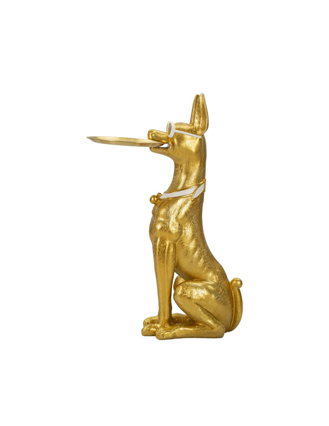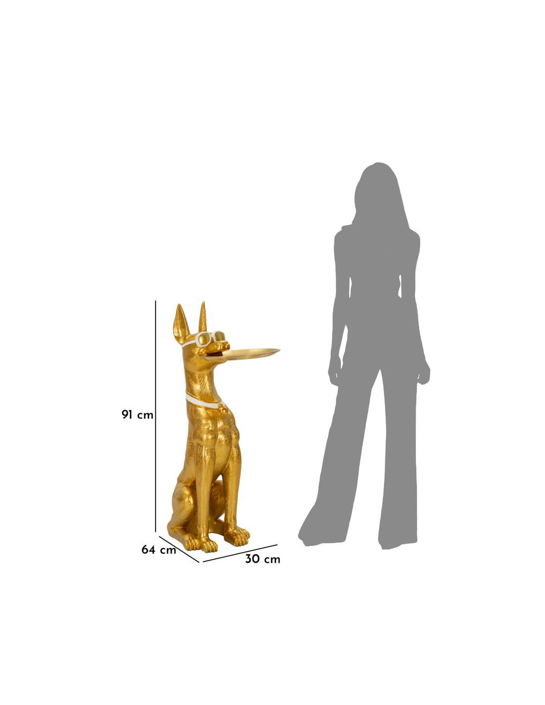 Grande Statue déco moderne Dobermann avec plateau Hauteur 91 cm en Résine Métal Doré Blanc Pit