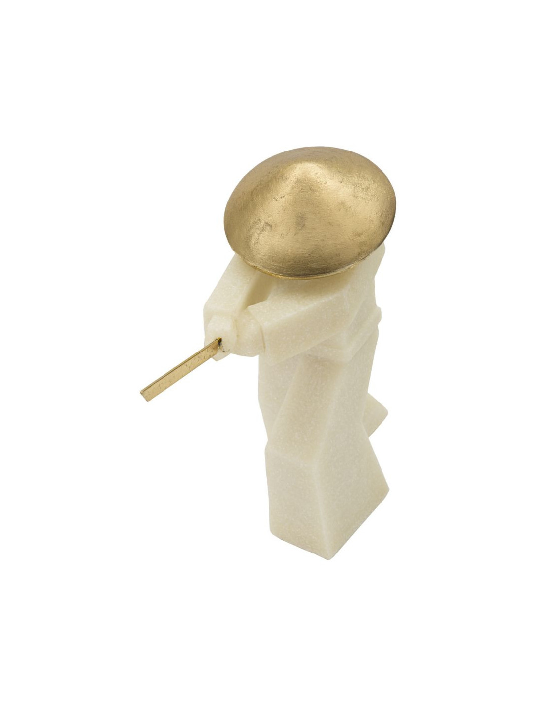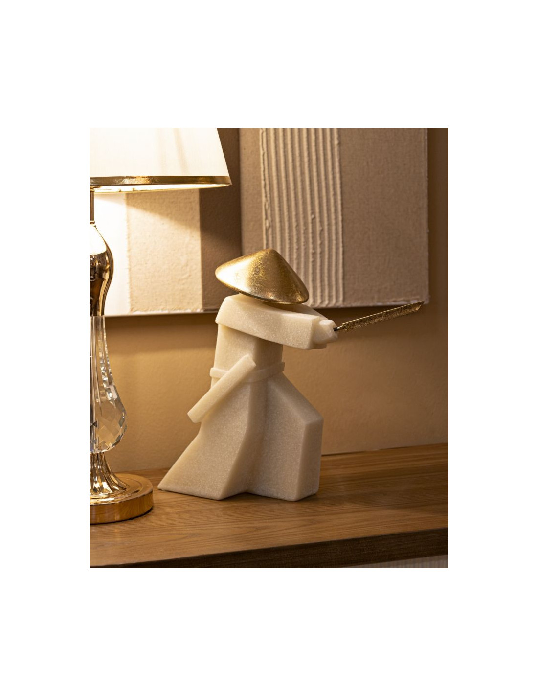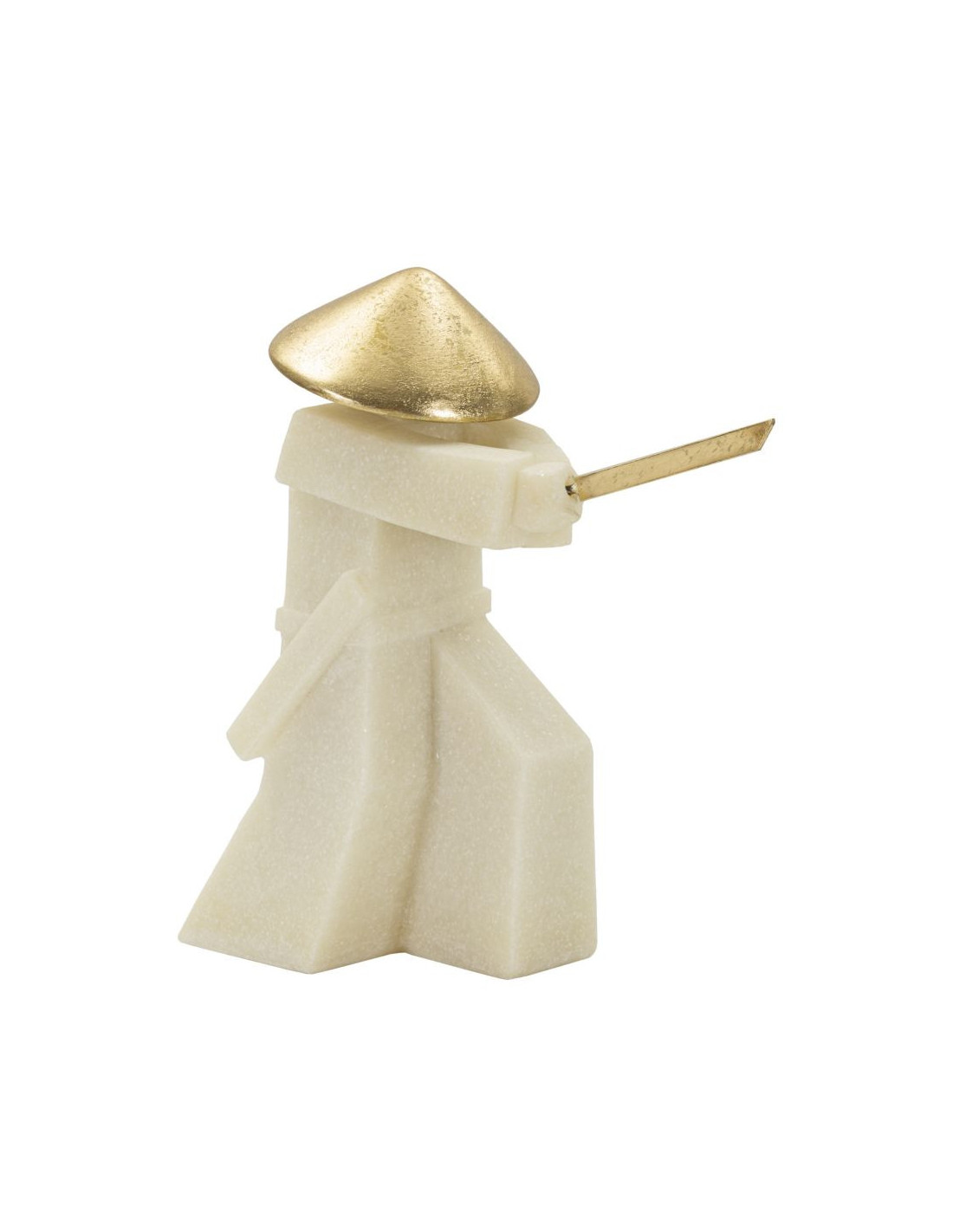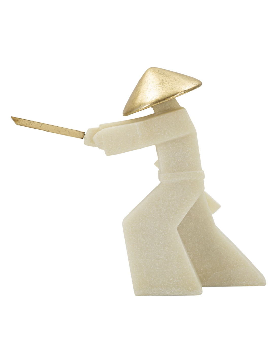 Grande Statue déco moderne Samouraï Chudan-no-kamae Hauteur 30 cm en Résine Blanc Effet quartz Métal Doré Toku