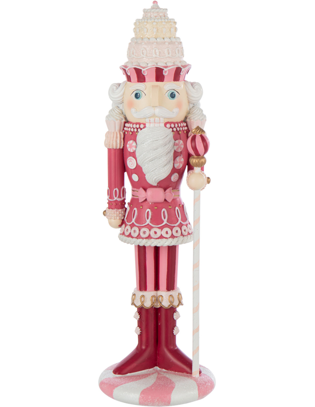 Grande Statuette de Noël Casse Noisette Bonbon Hauteur 38 cm en Résine Rose Blanc Nutsweet - 1