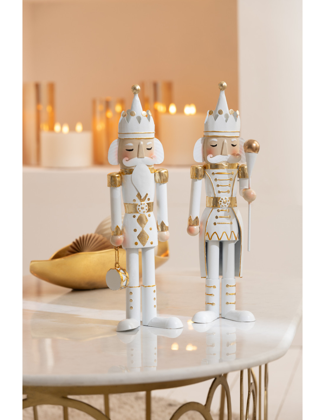Grande Statuette déco de Noël Soldat Casse noisette Hauteur 106 cm en Métal Blanc Doré Lysvene