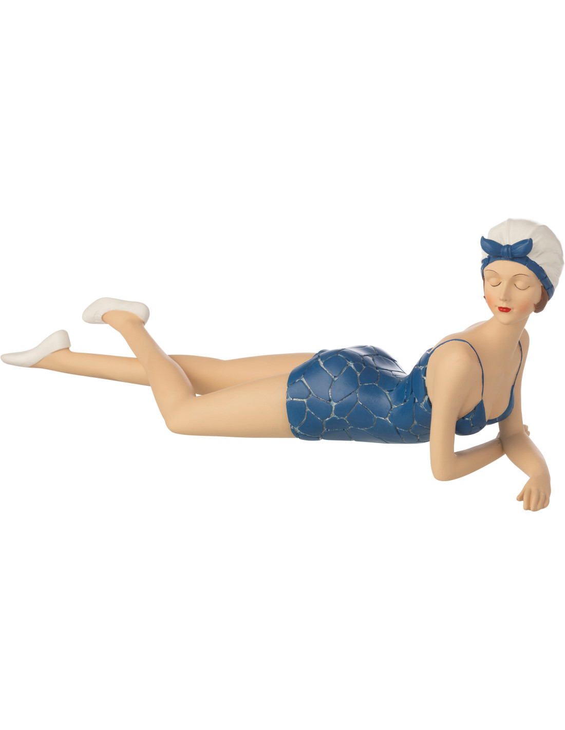 Grande Statuette déco design Baigneuse allongée 54 cm Résine Bleu Blanc Zonbad