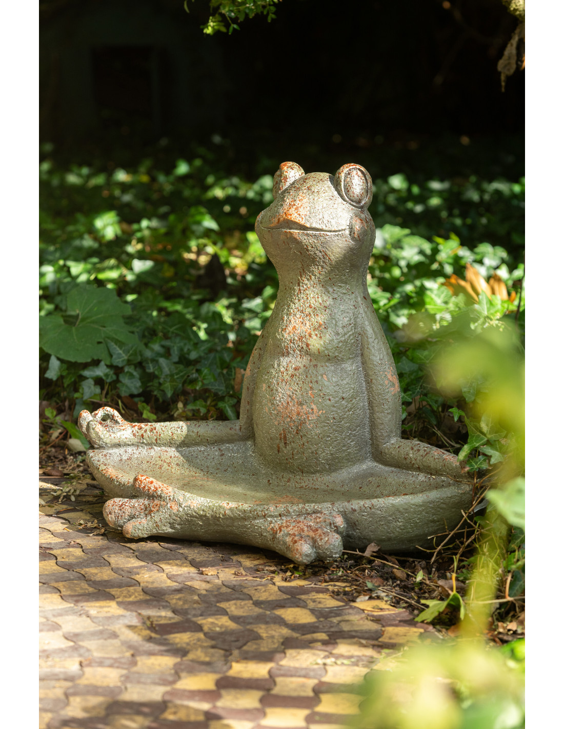Statue de jardin Grenouille vintage H 49 cm Magnésium Vert foncé Vieilli Erfgoed