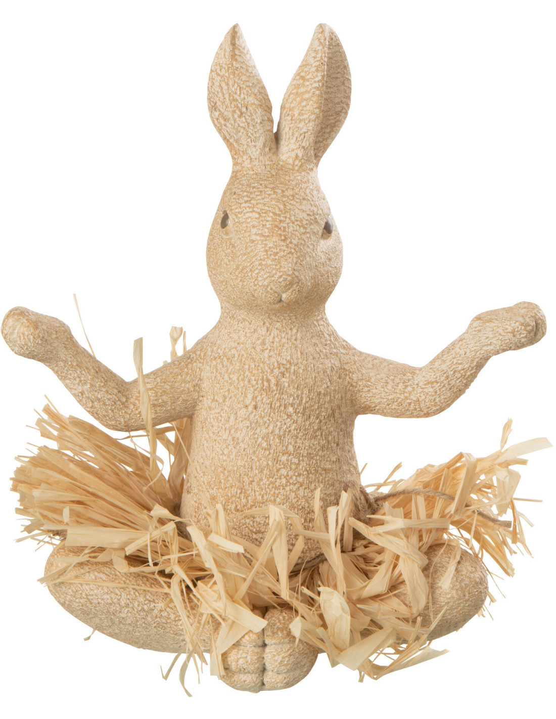 Grande Statuette originale Lapin assis Yoga Hauteur 21 cm en Résine Beige Raphia Naturel Davorin - 1