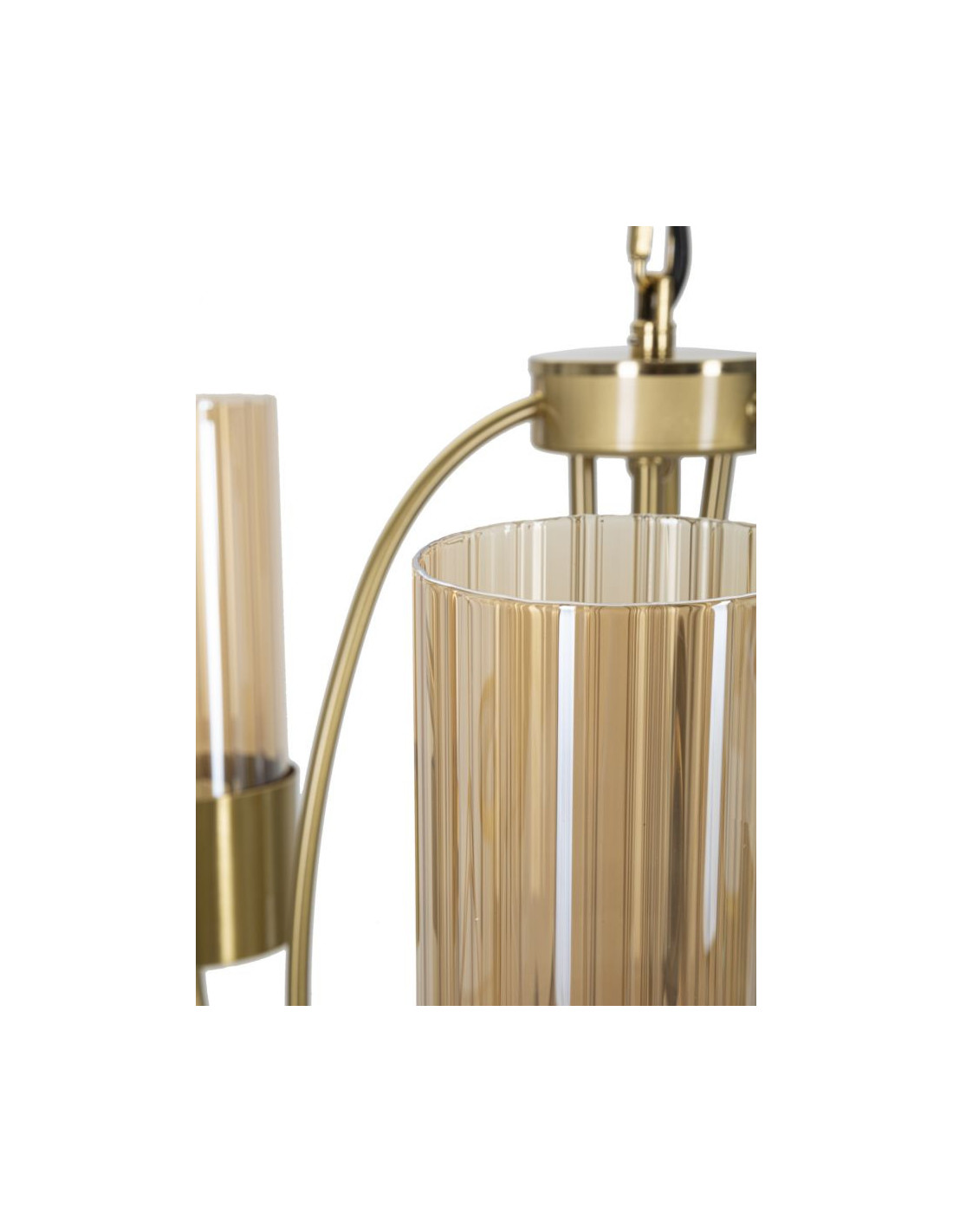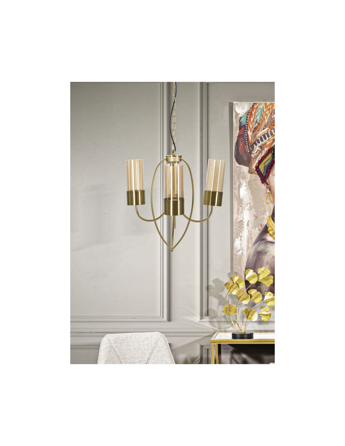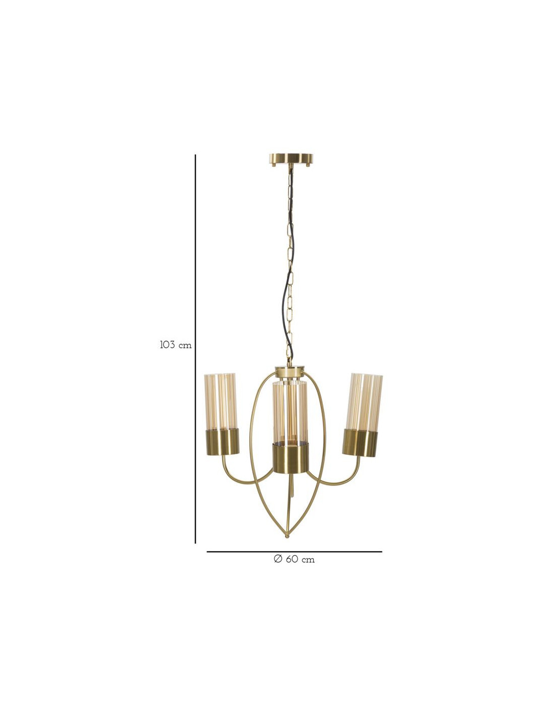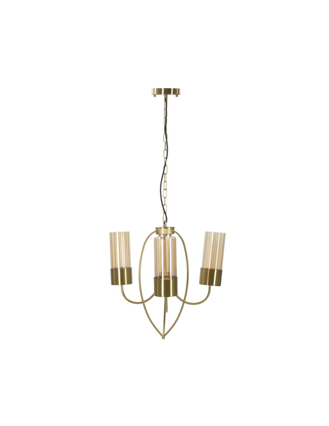 Grande Suspension moderne chic 3 lampes 60 cm Verre Ambré Métal Doré Versailles