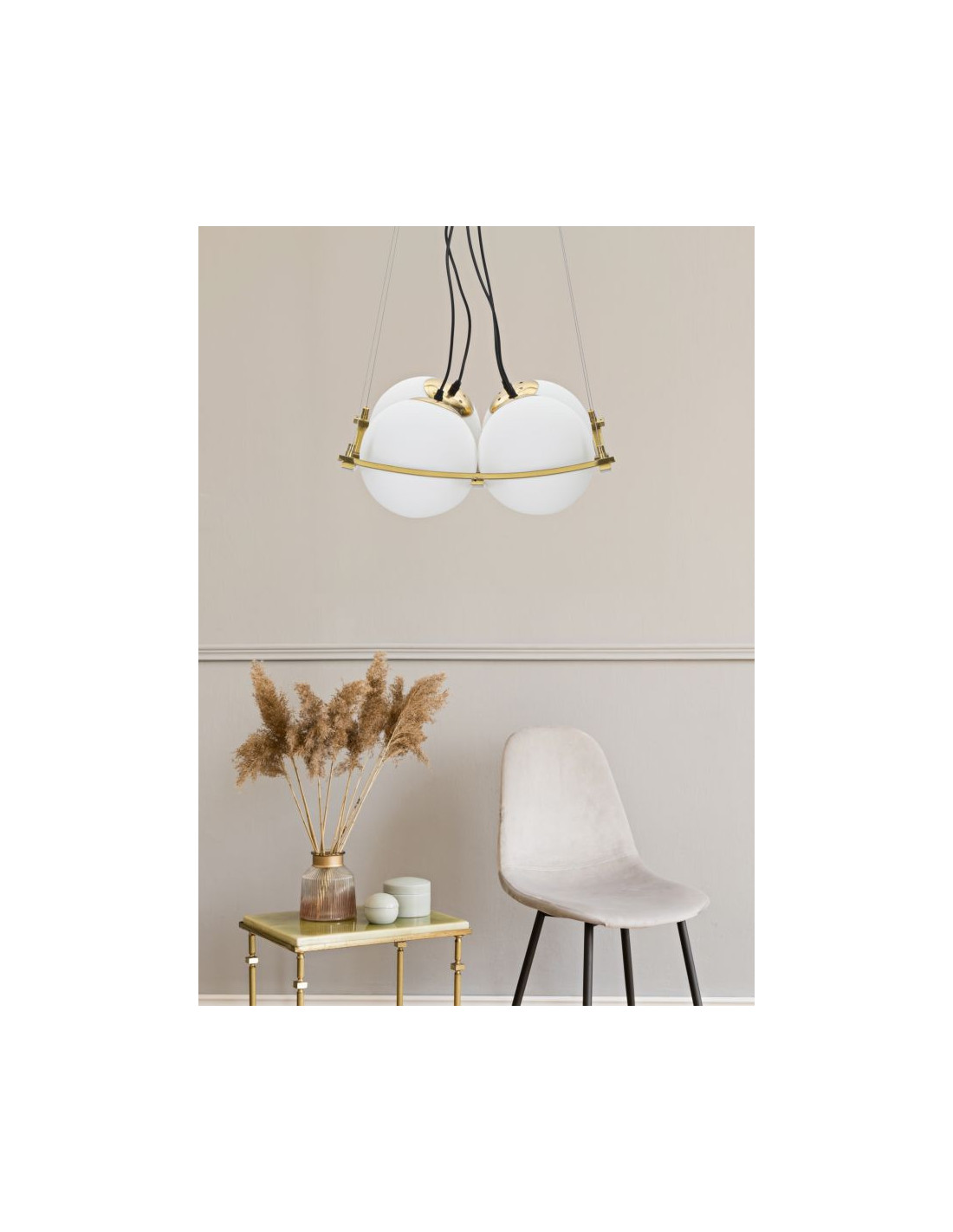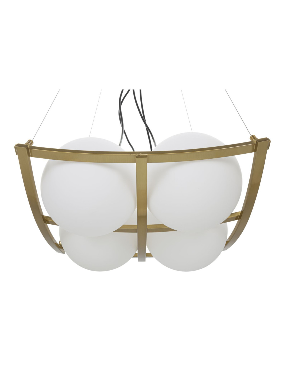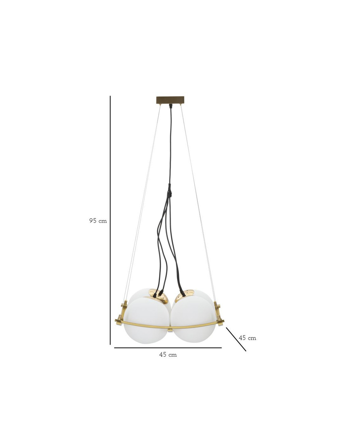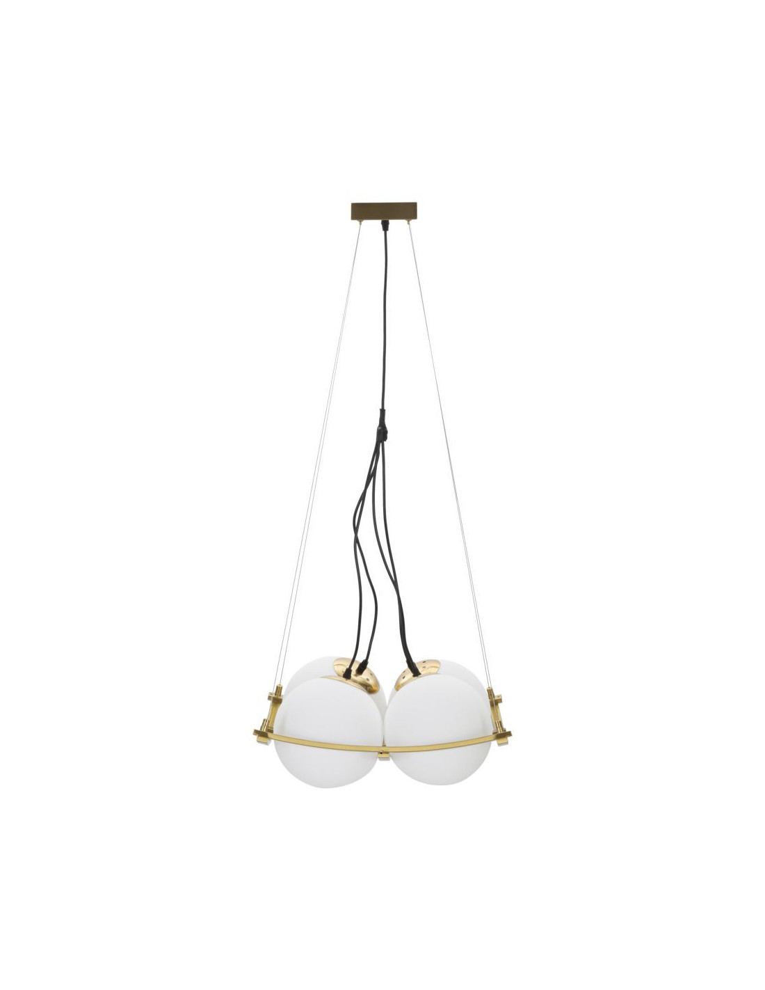 Grande Suspension moderne chic 4 boules 45 cm Verre Blanc Métal Doré Japan