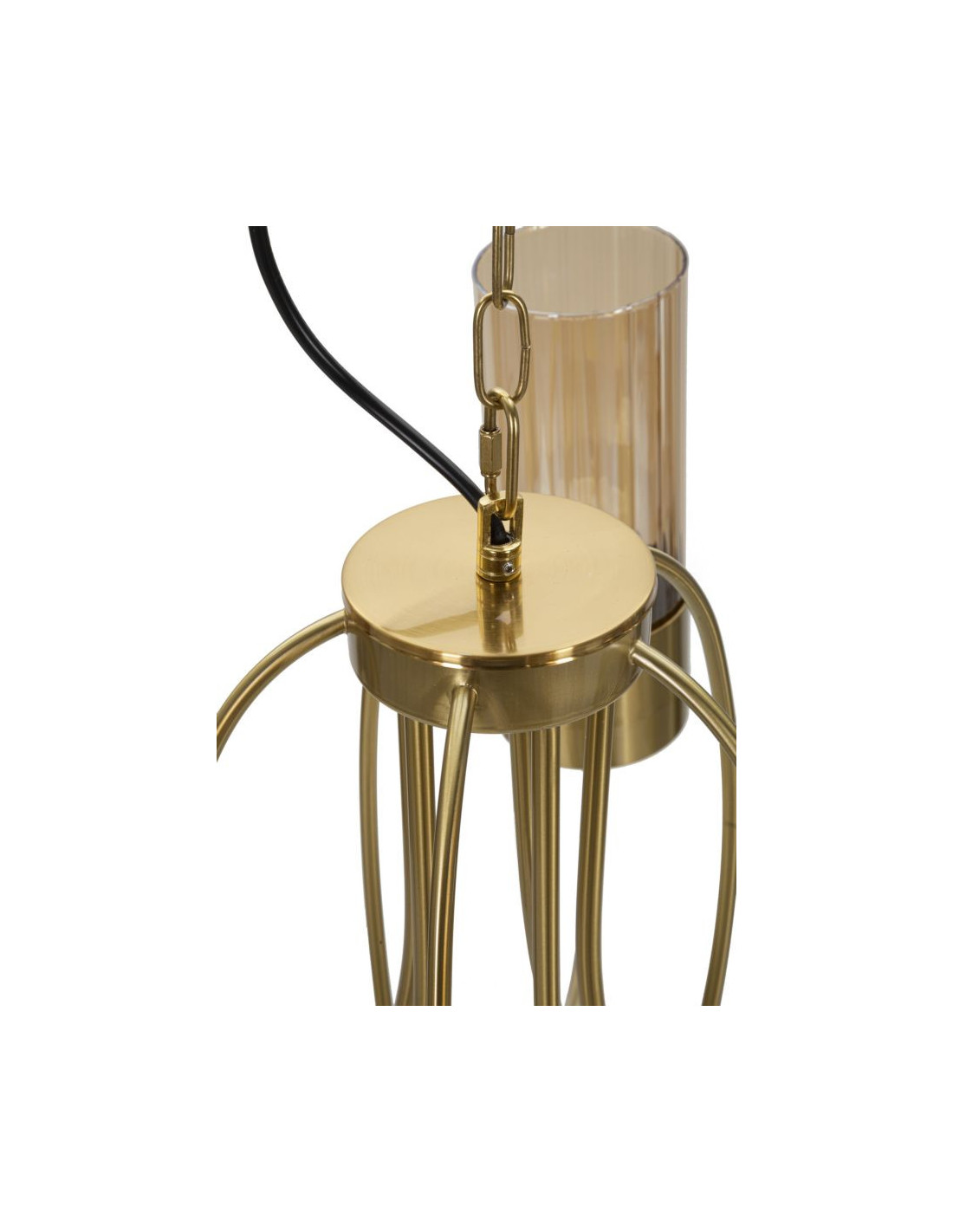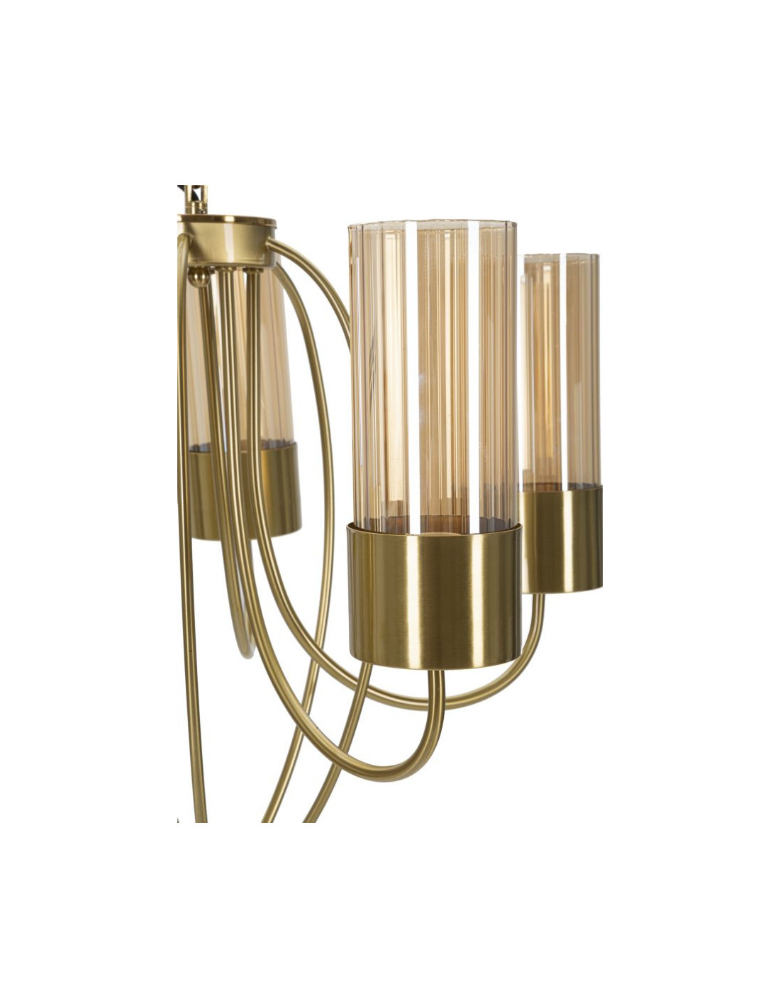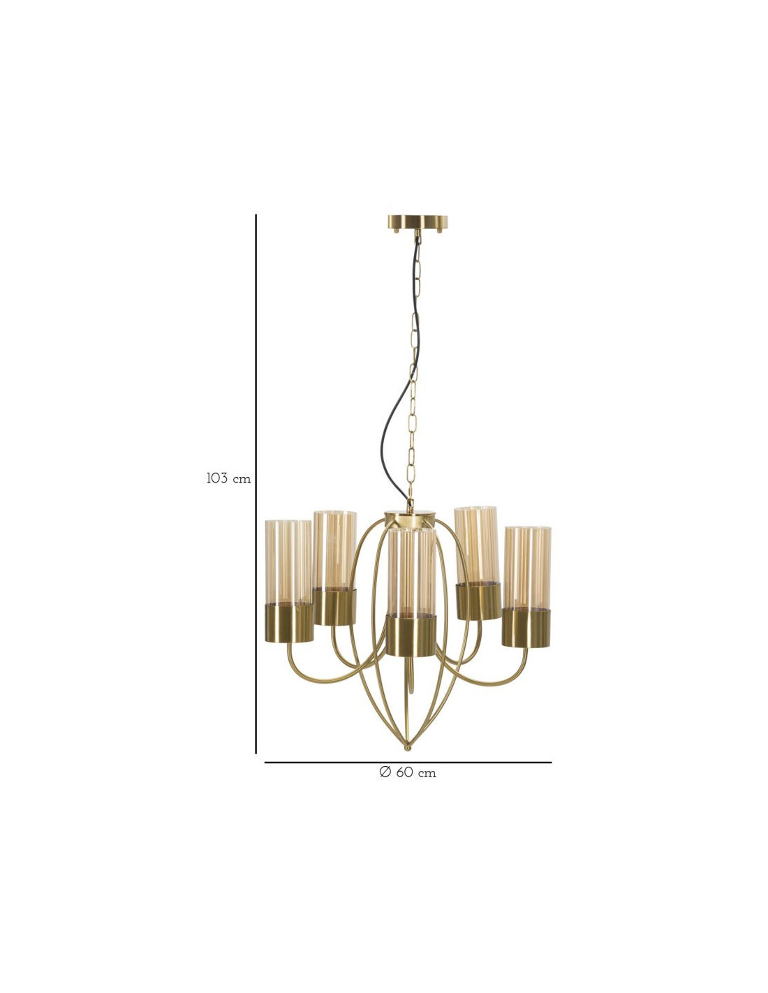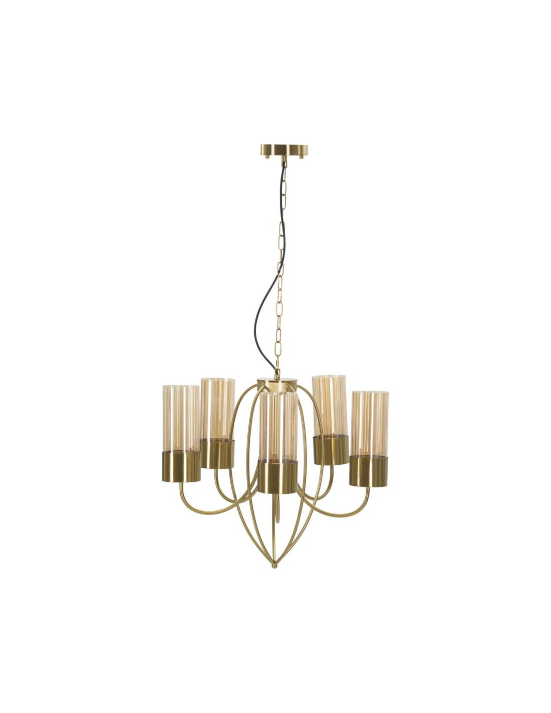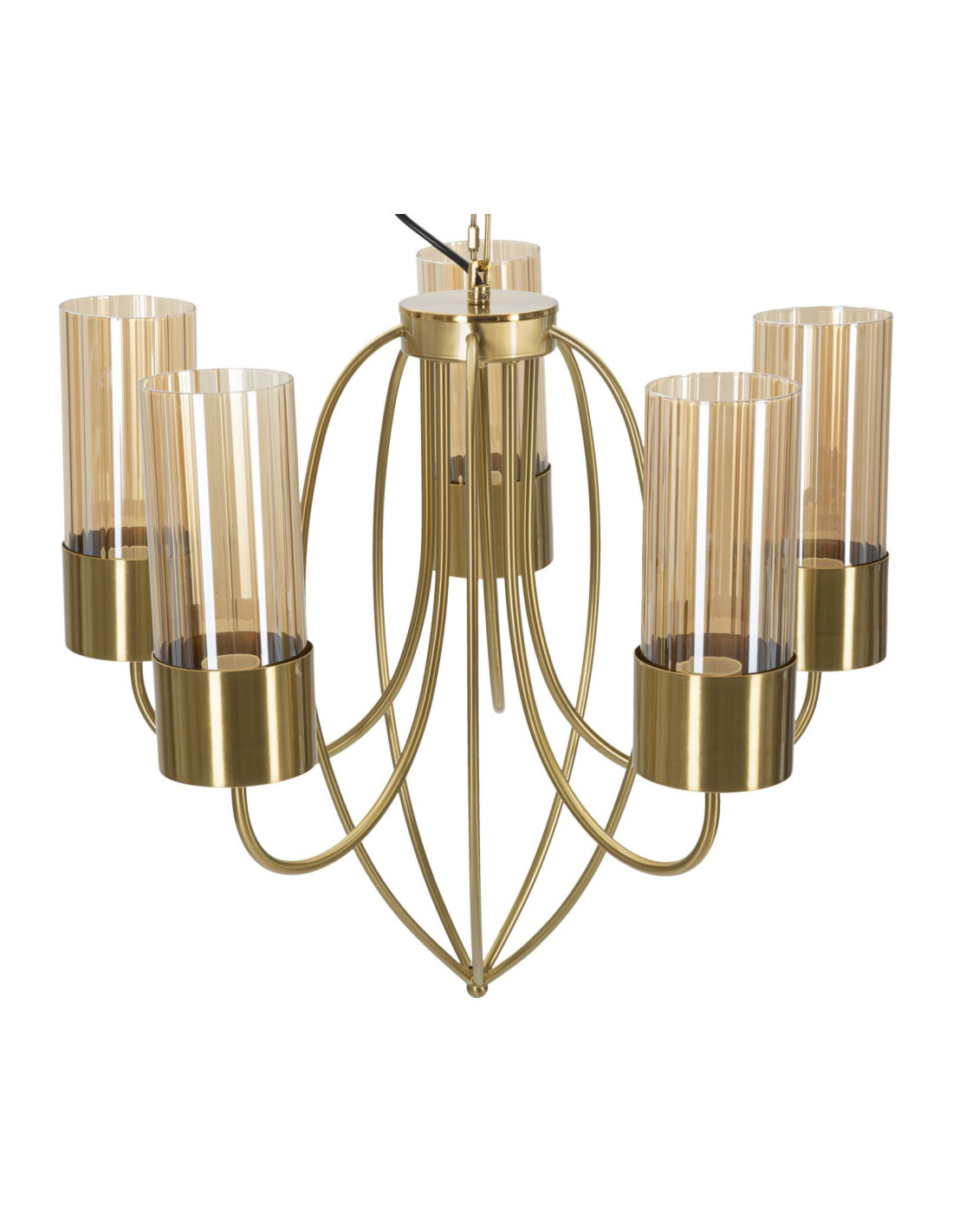 Grande Suspension moderne chic 5 lampes 60 cm Verre Ambré Métal Doré Versailles
