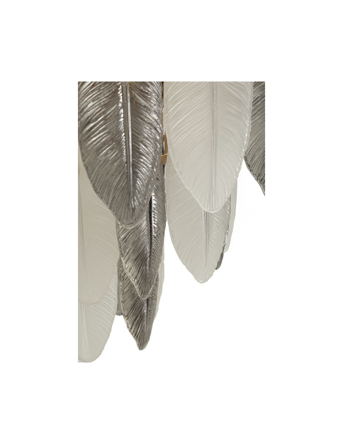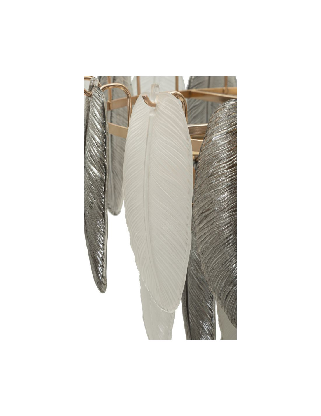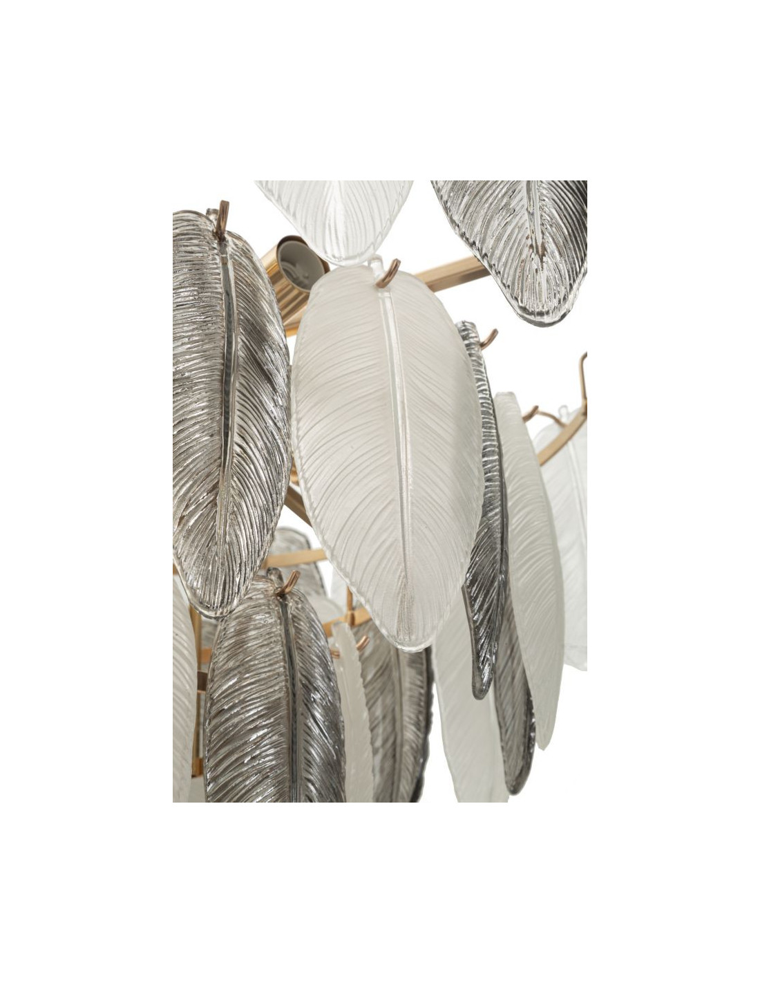 Grande Suspension moderne chic Plumes Diamètre 60 cm Verre Transparent Métal Argenté Doré Leafy