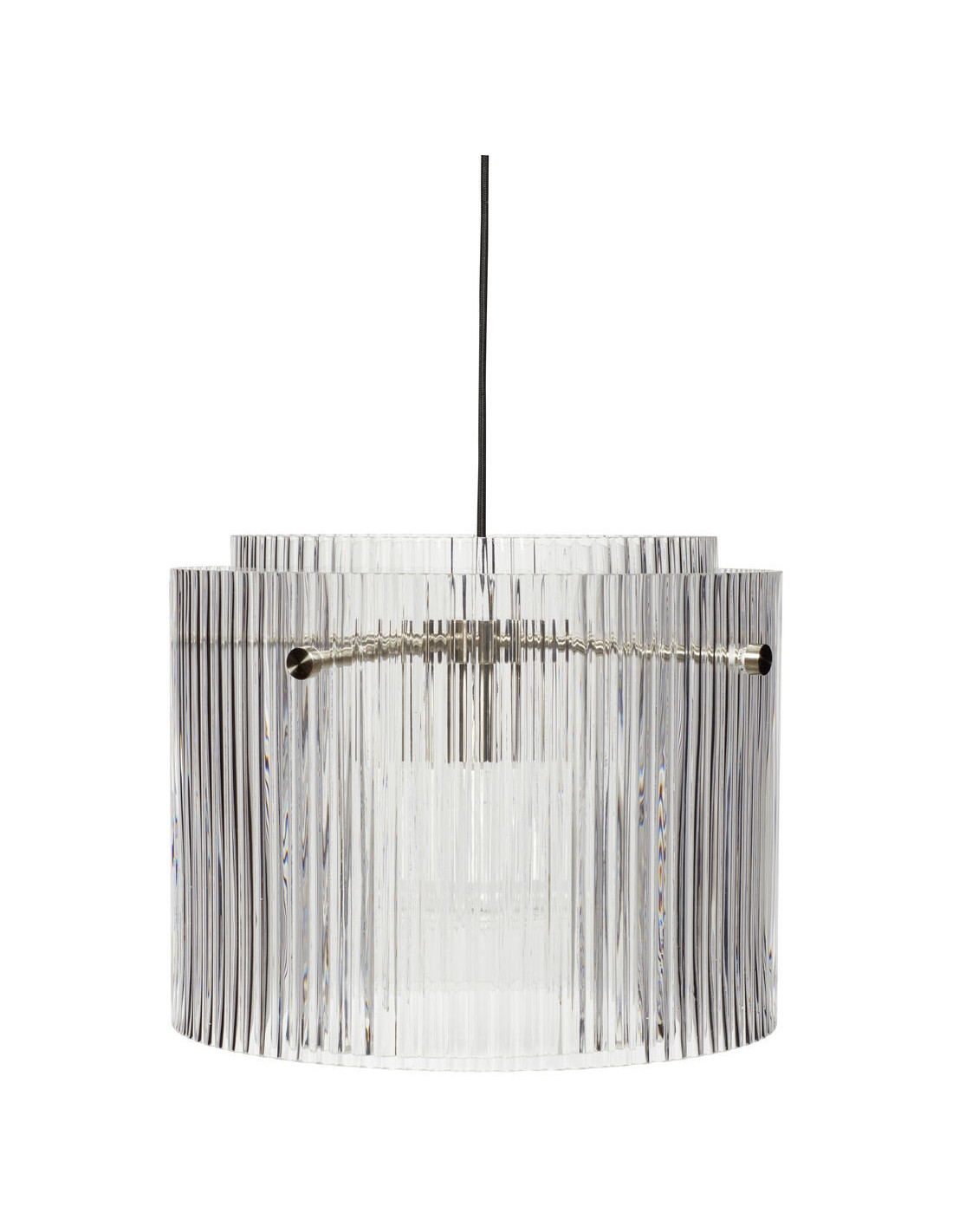 Grande Suspension moderne Diamètre 41 cm en Verre Transparent Texturé Métal Argenté Ripple