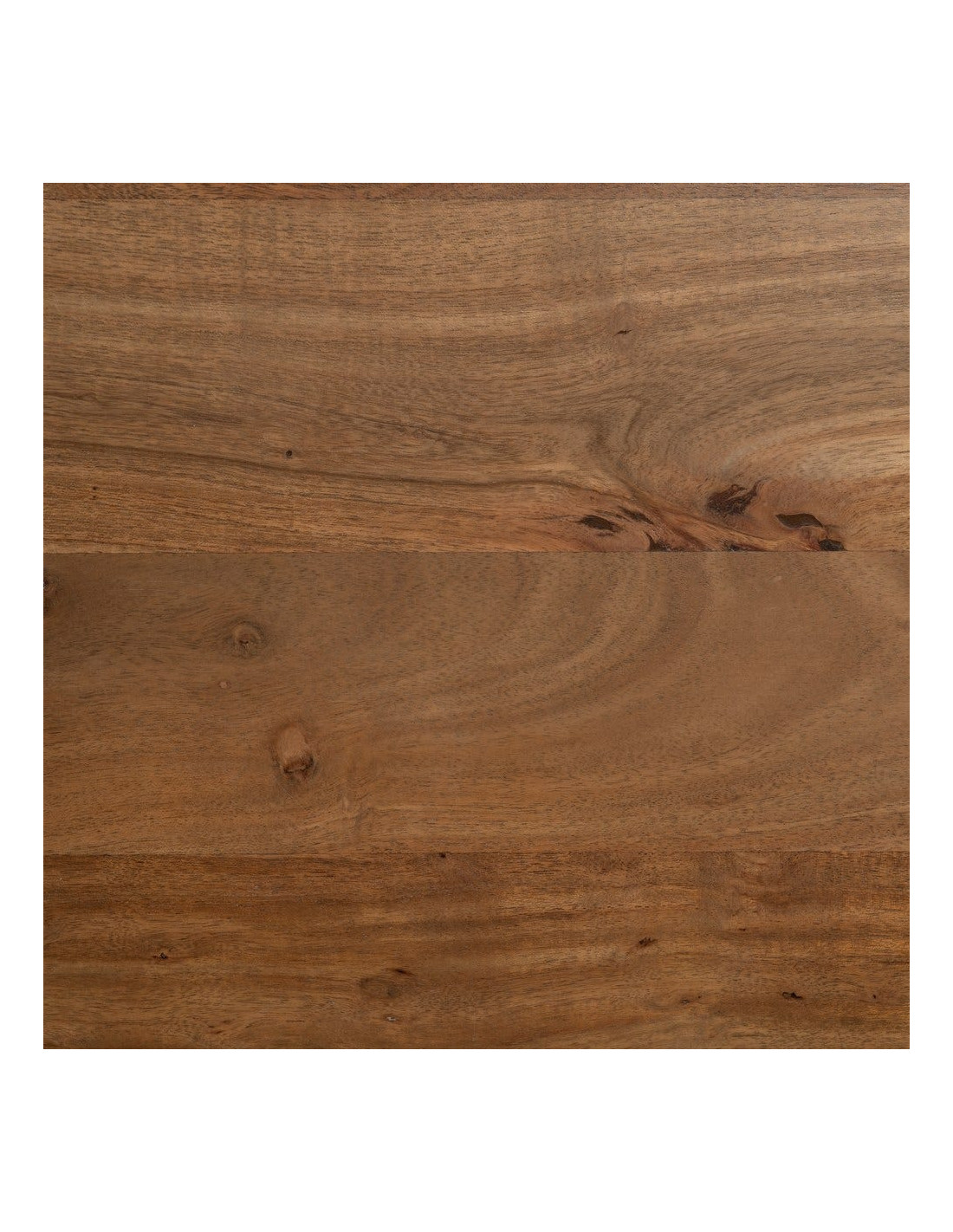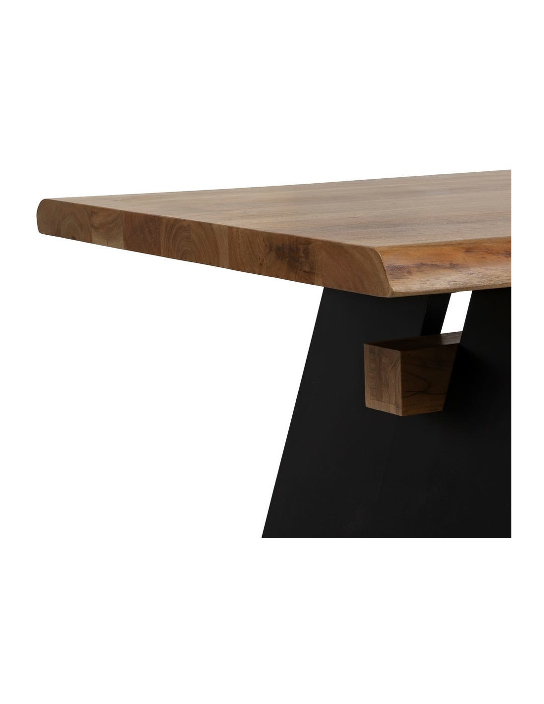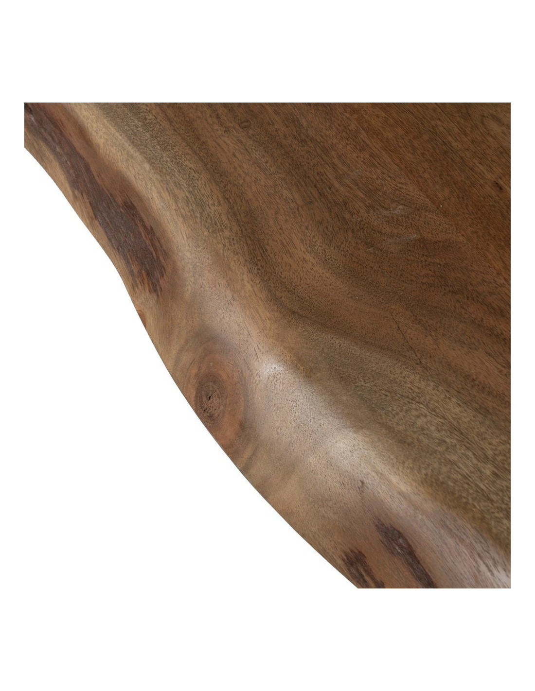 Le bois d’acacia dévoile un veinage naturel riche et irrégulier. Son épaisseur marquée renforce la sensation de solidité et souligne l’authenticité de la matière.