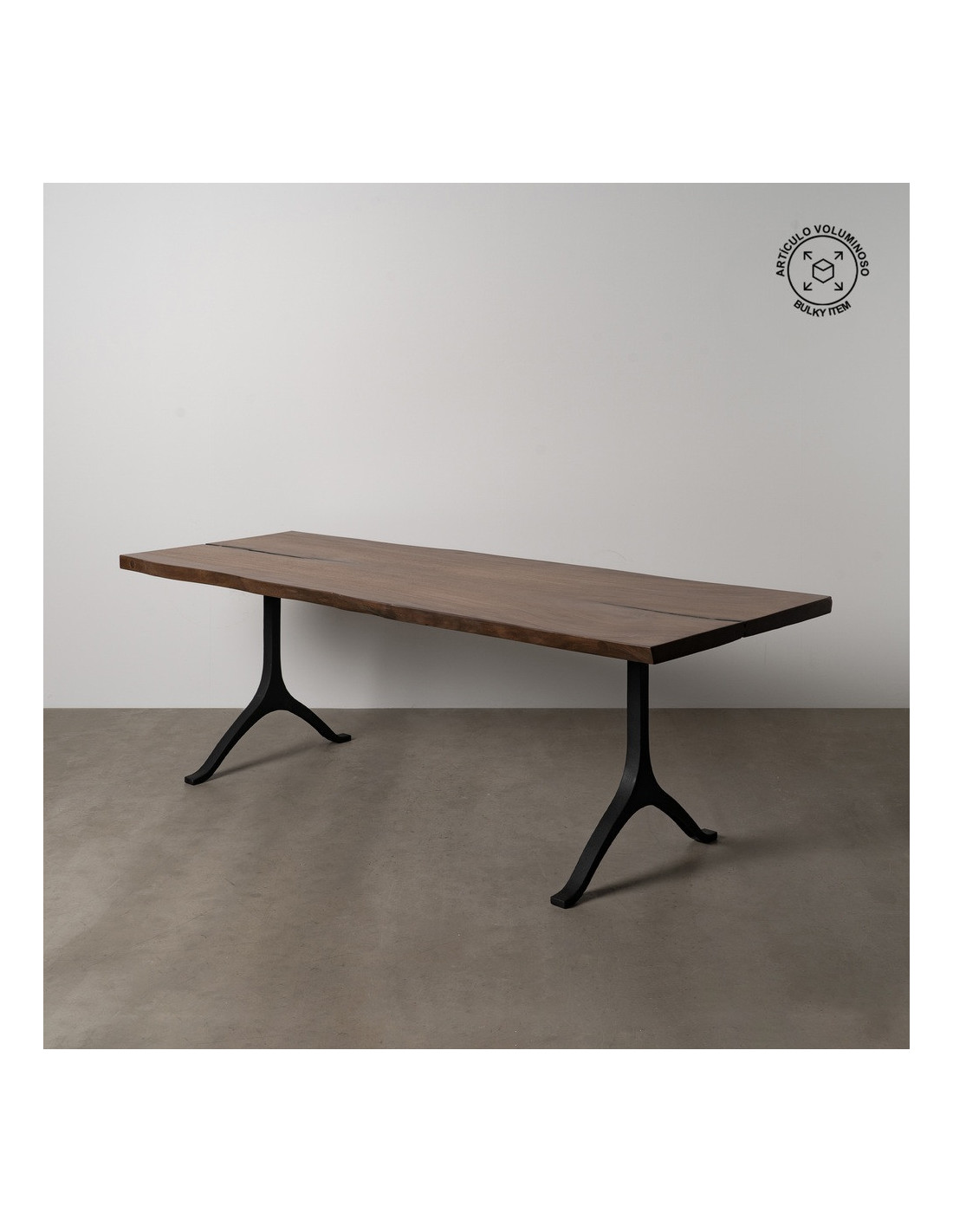 Grande Table à manger industrielle Rectangulaire 8 personnes en Bois de suar Marron Métal Noir Mirta - 8