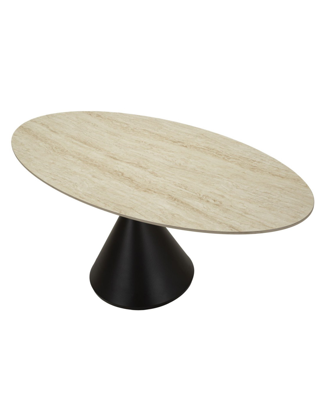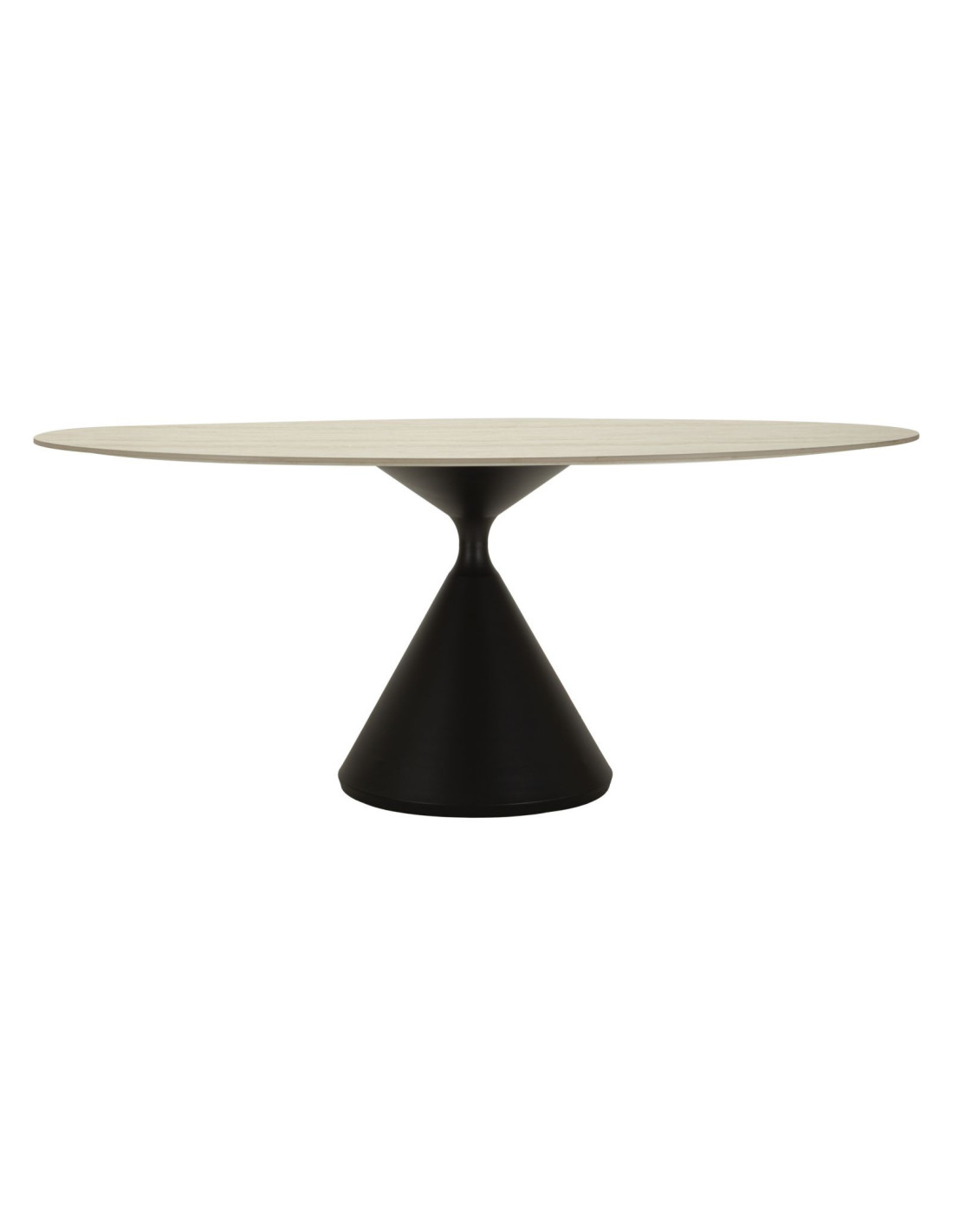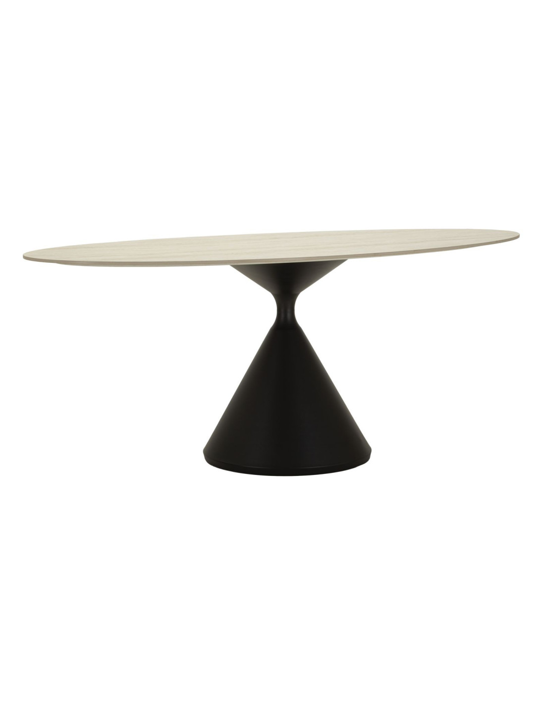 Grande Table à manger moderne Ovale 6 personnes Bois MDF Naturel Bois de frêne Métal Noir Space