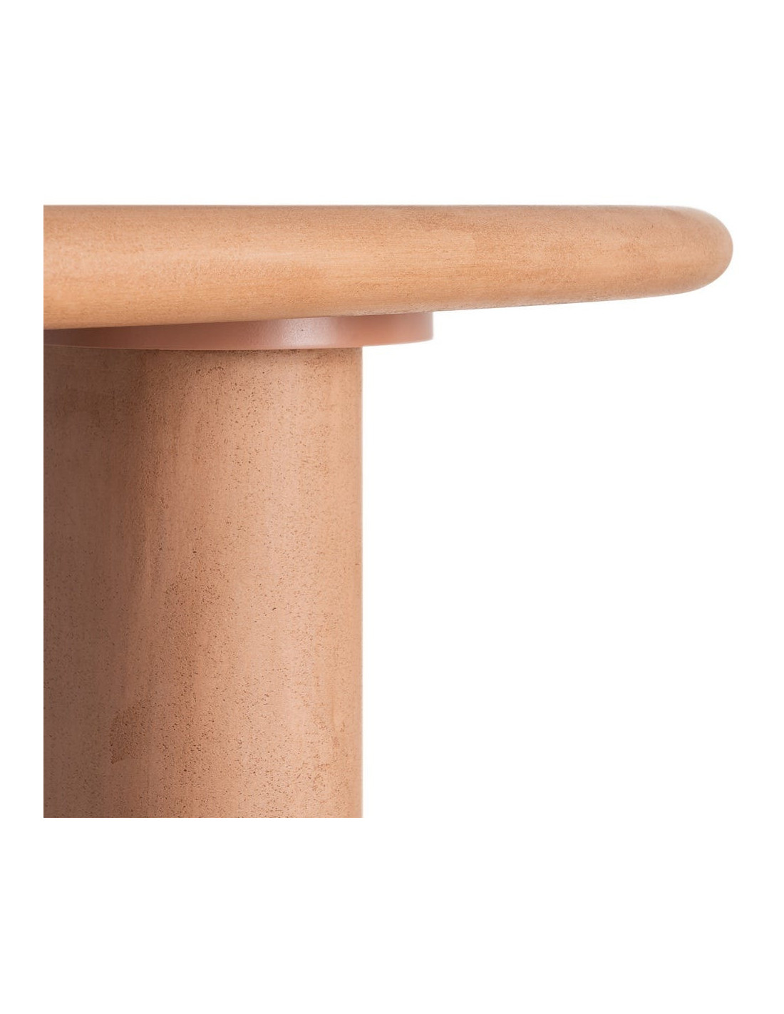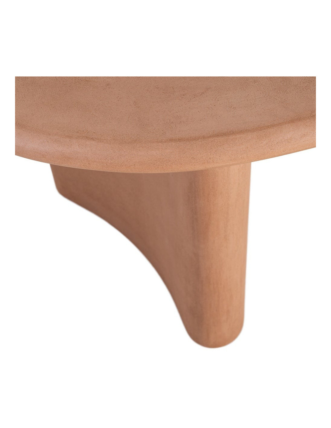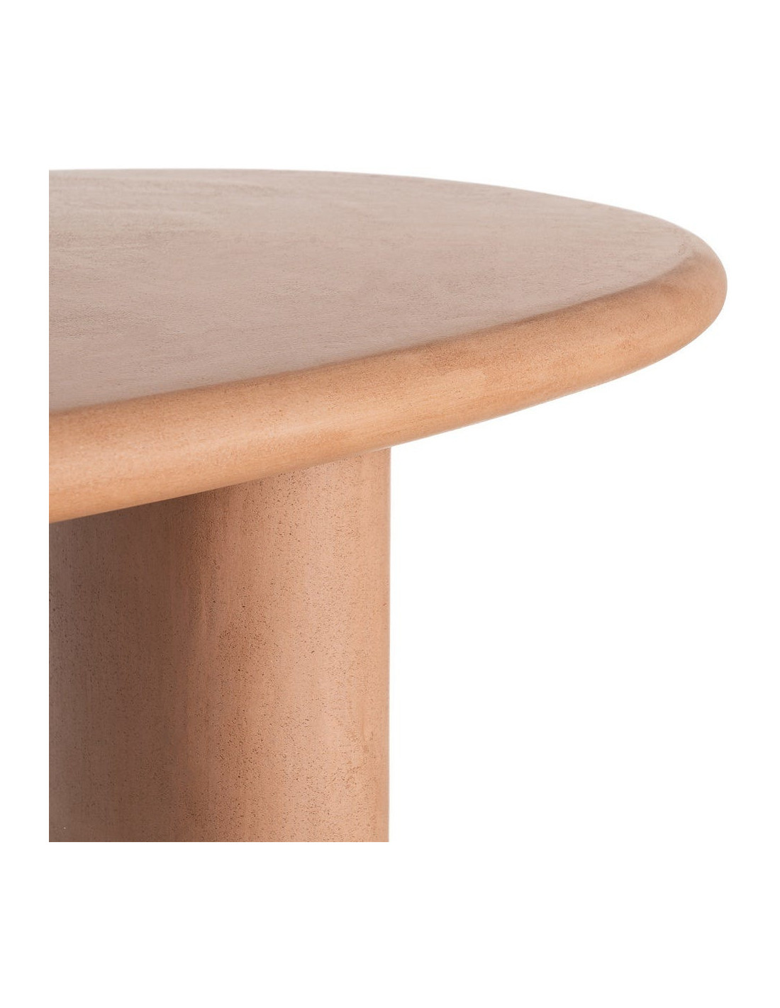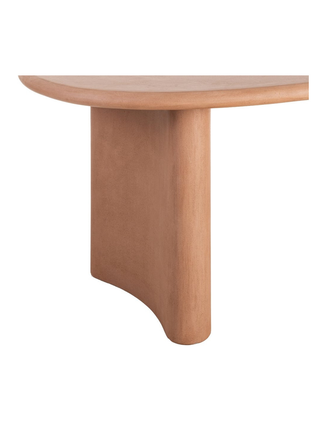 Une table à manger ovale aux lignes adoucies, portée par une finition microciment terracotta qui réchauffe instantanément l’espace.