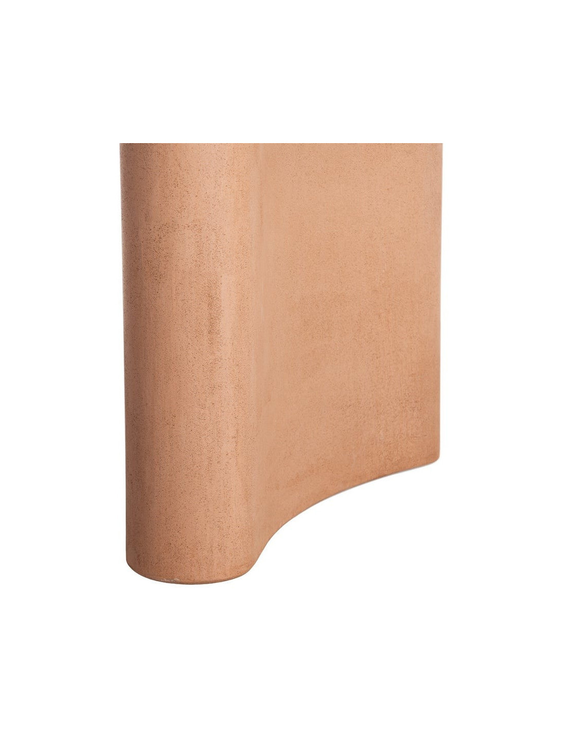 La table repose sur deux pieds larges et pleins, qui renforcent sa présence visuelle. Leur forme enveloppante donne une impression de stabilité tout en affirmant un style contemporain et architectural.