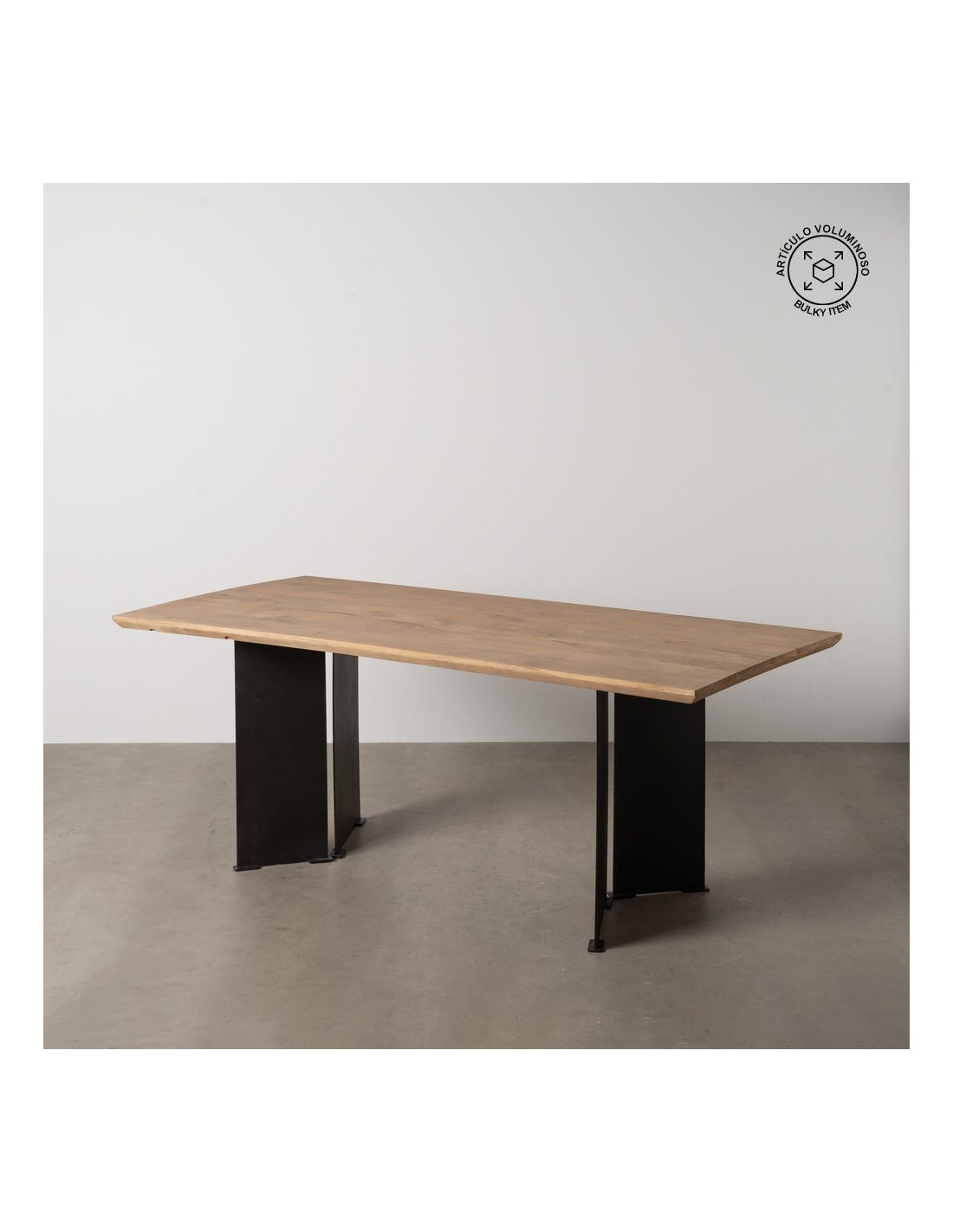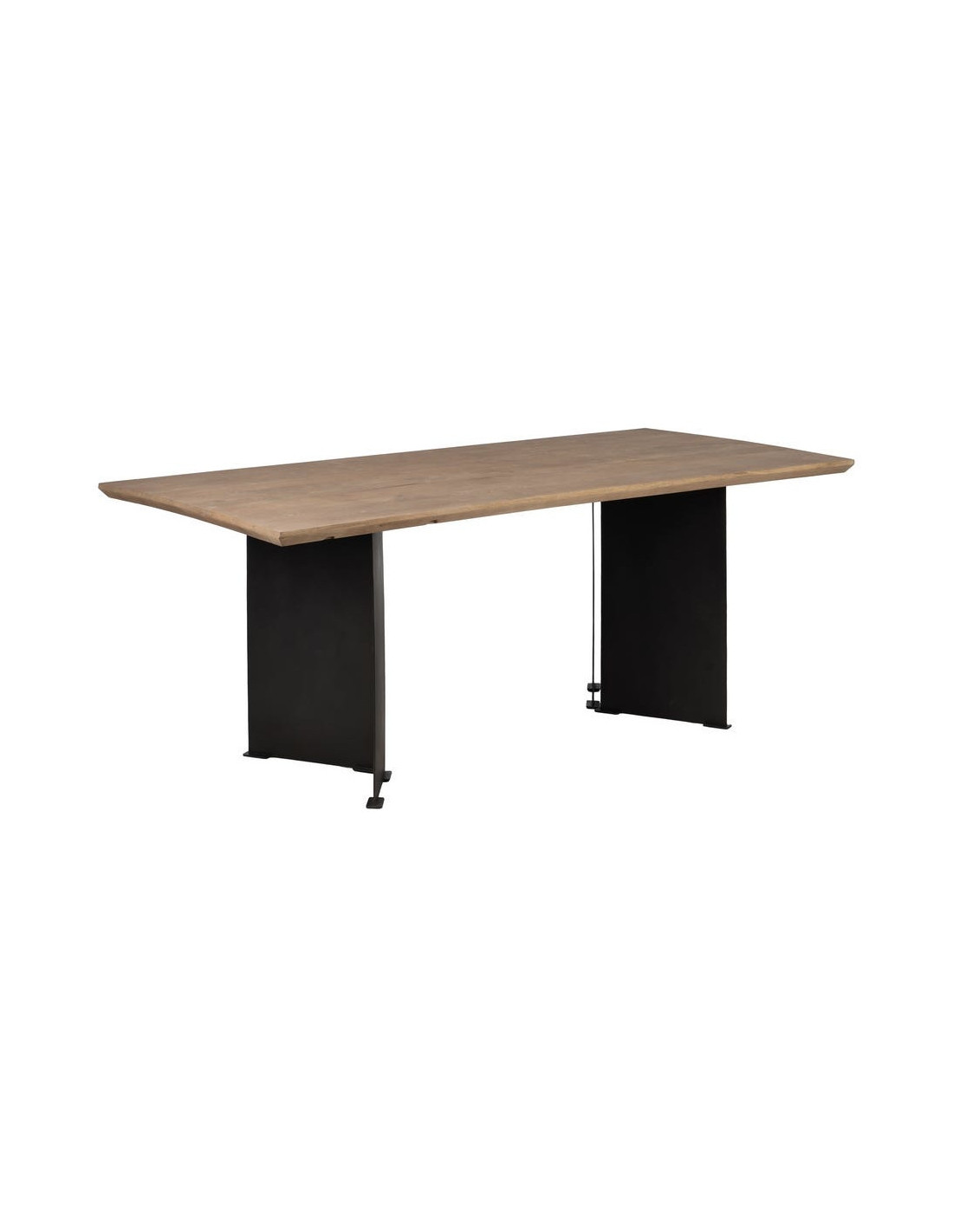 Une table à manger au caractère affirmé, où le bois naturel rencontre une structure métallique pour un rendu contemporain.
