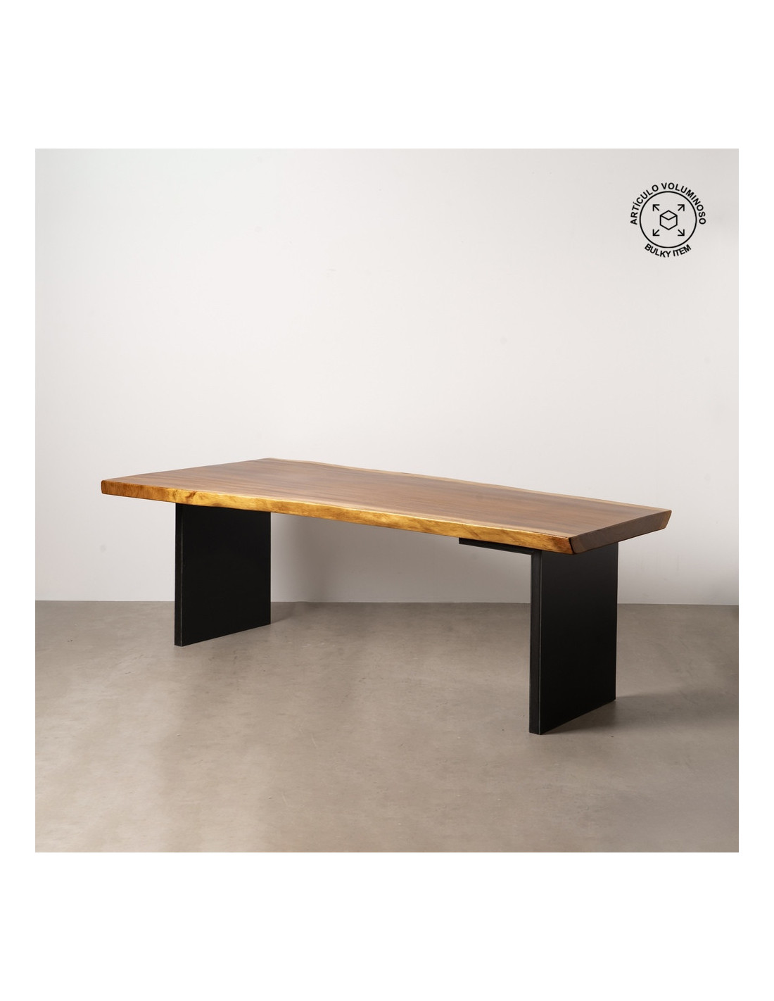 Grande Table à manger rustique chic Rectangulaire 8 personnes en Bois de suar Naturel Métal Noir Amaya
