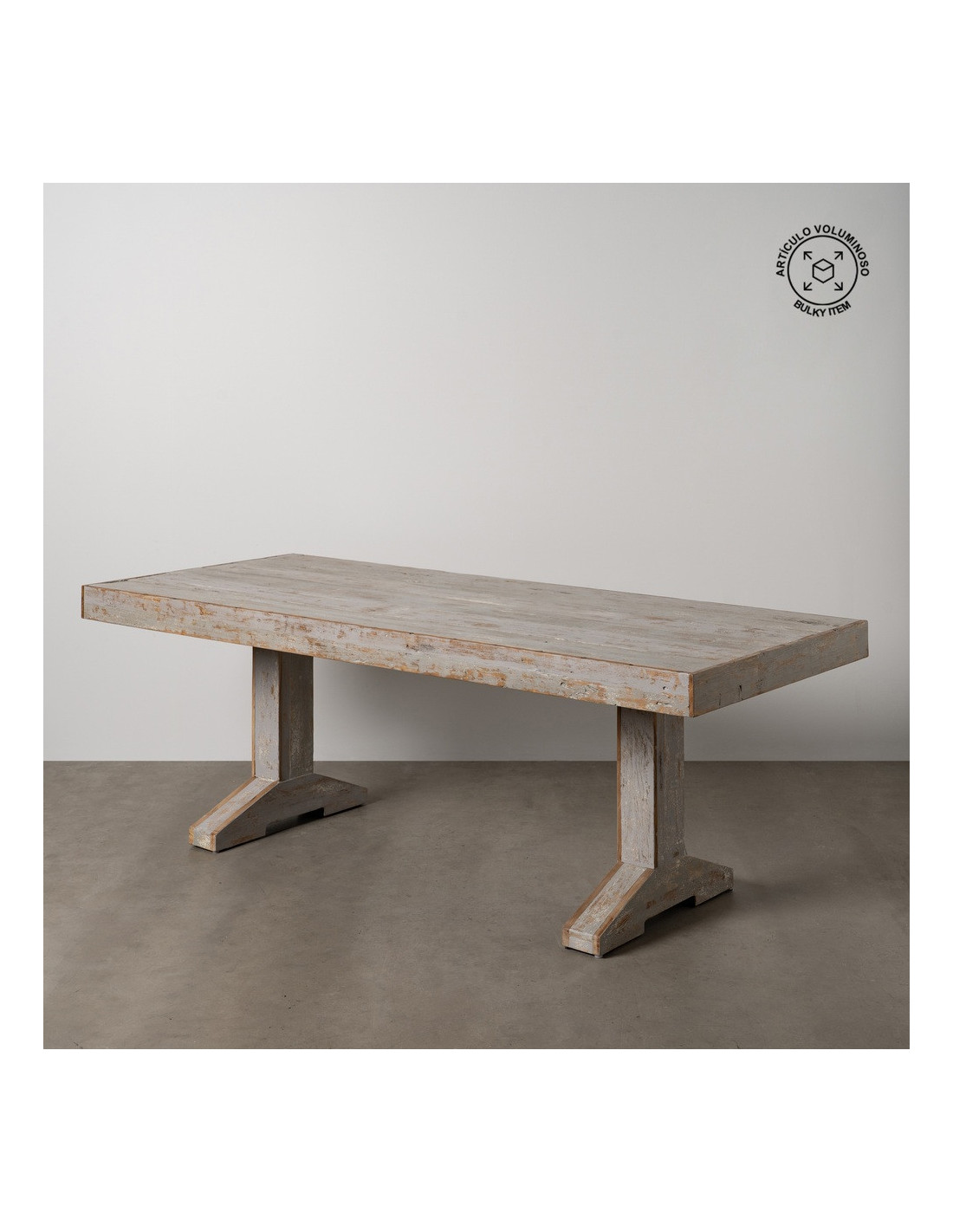 Grande Table à manger vintage Rectangulaire 8 personnes en Bois recyclé Gris Vieilli Naturel Mauro