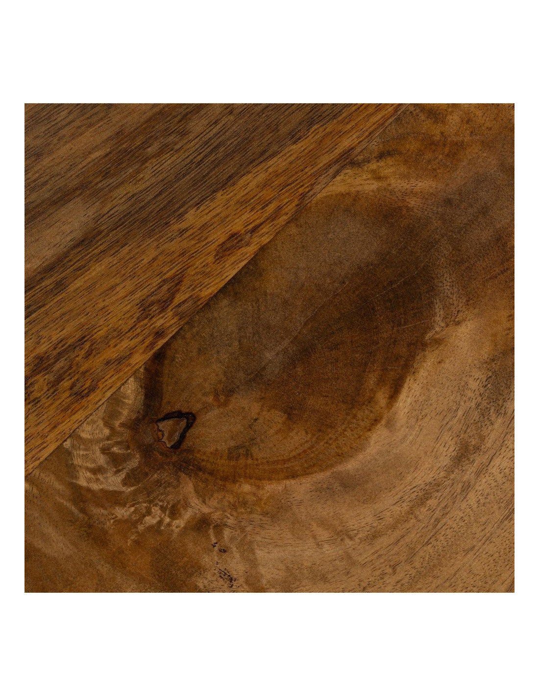 Le bois de manguier est une essence reconnue pour sa solidité et ses variations naturelles. Chaque plateau présente des différences de teinte, de veinage ou de texture, rendant chaque table unique.