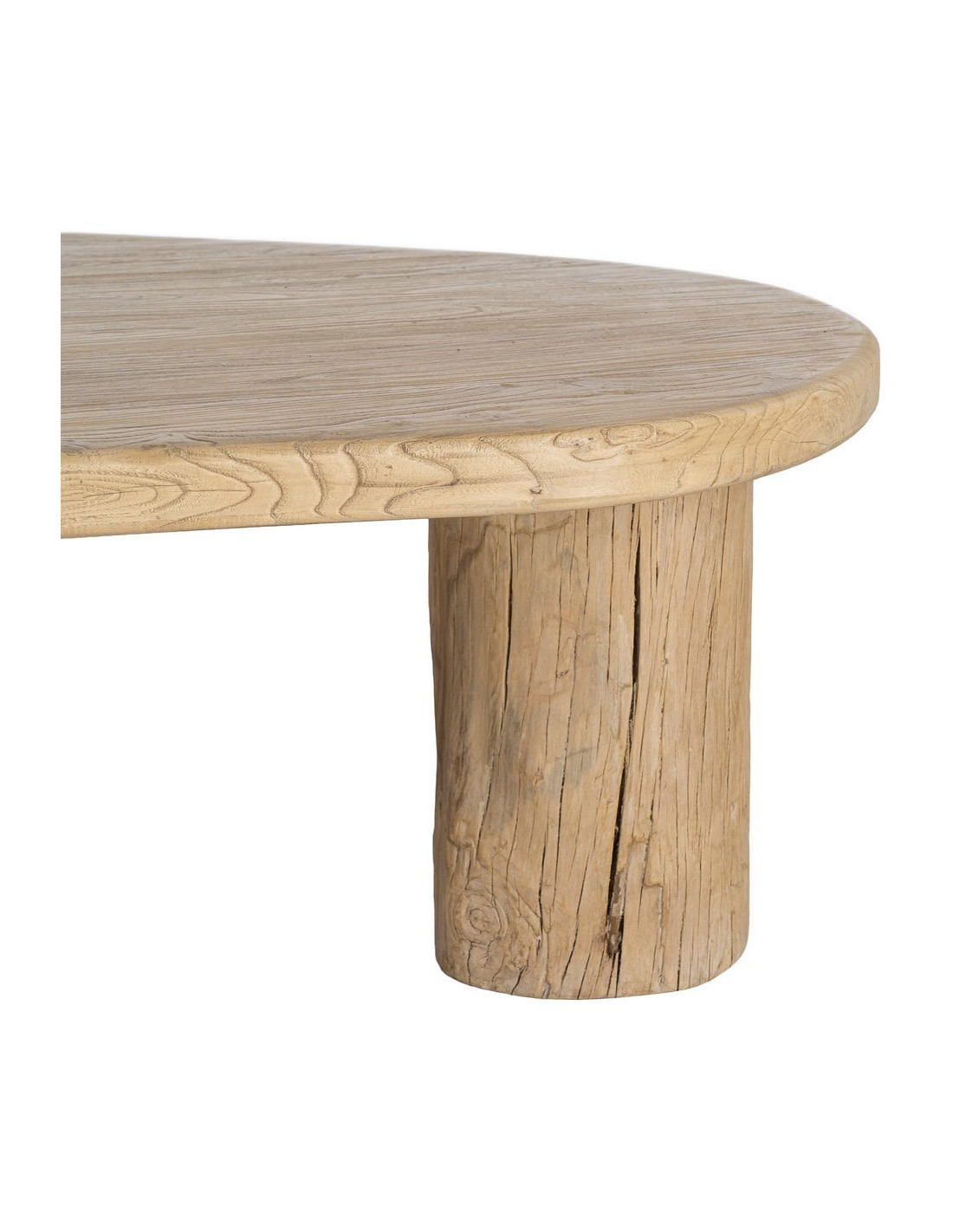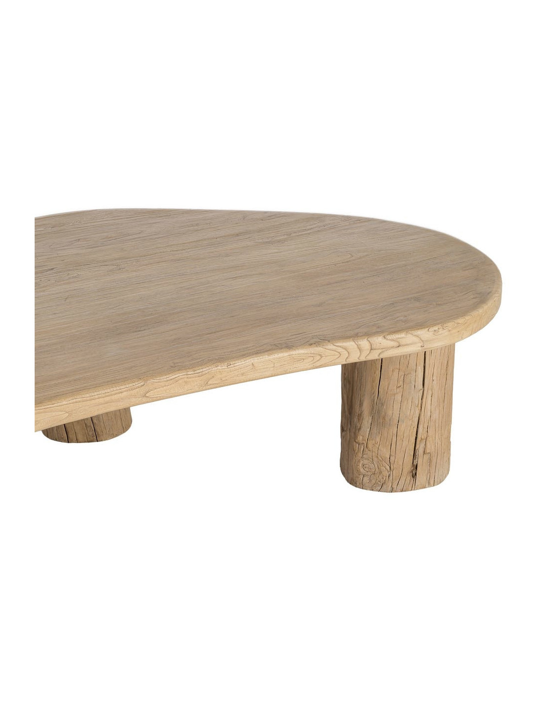 Grande Table basse design wabi-sabi Organique 170 cm Bois d'orme recyclé Naturel Tellumé
