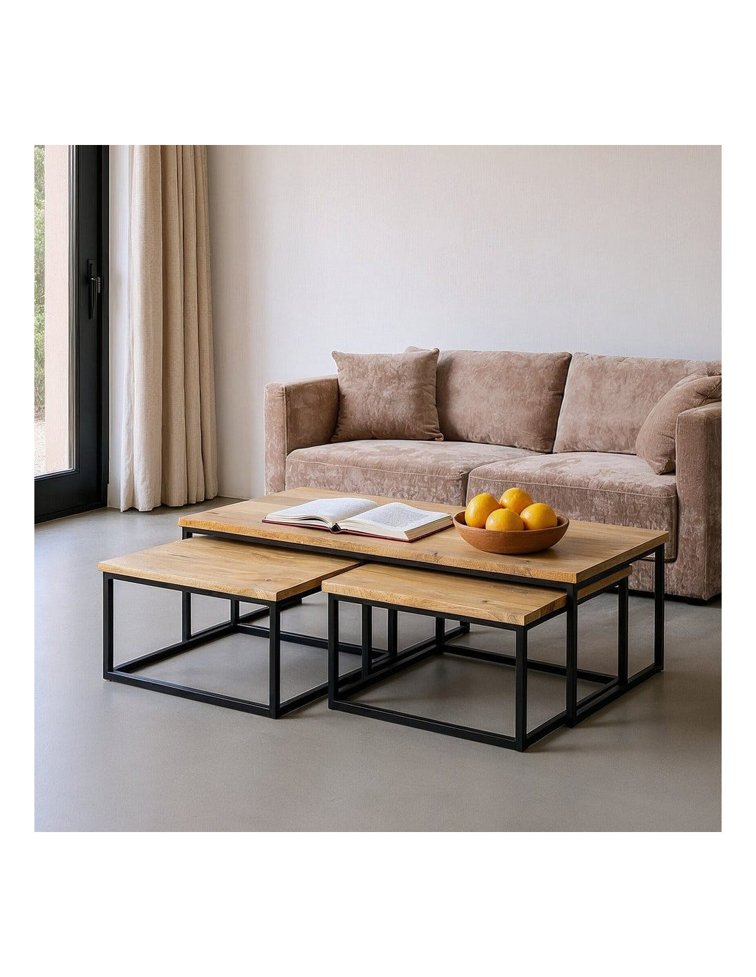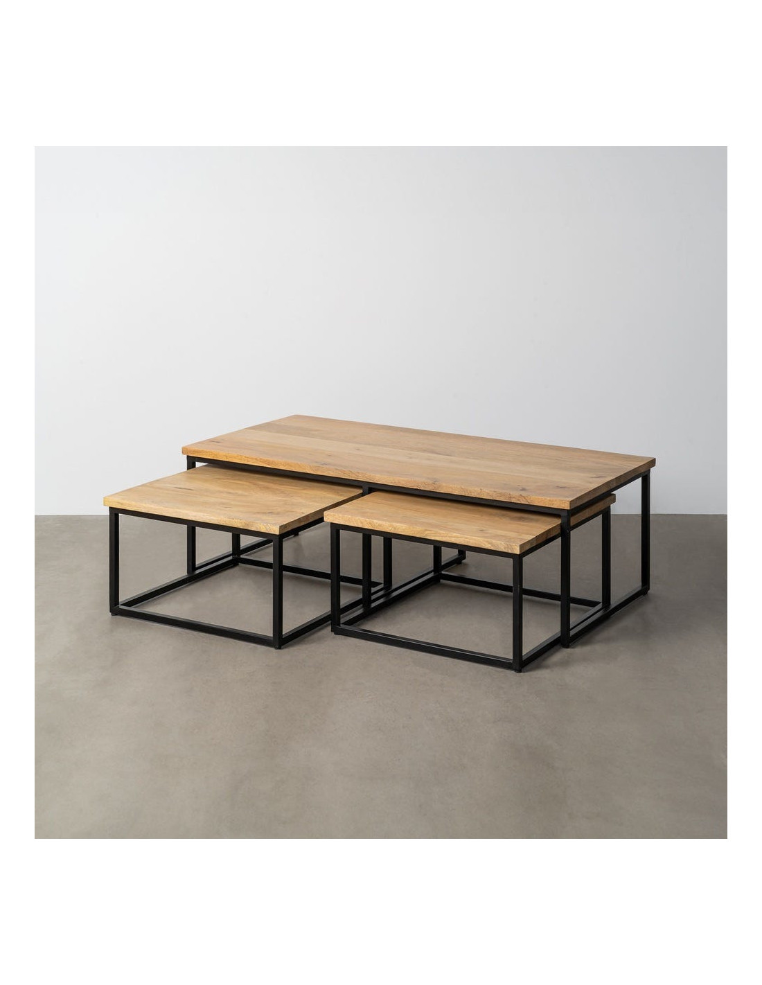 Grande Table basse Gigogne industrielle chic Rectangulaire en Bois de manguier Naturel Métal Noir Eyora
