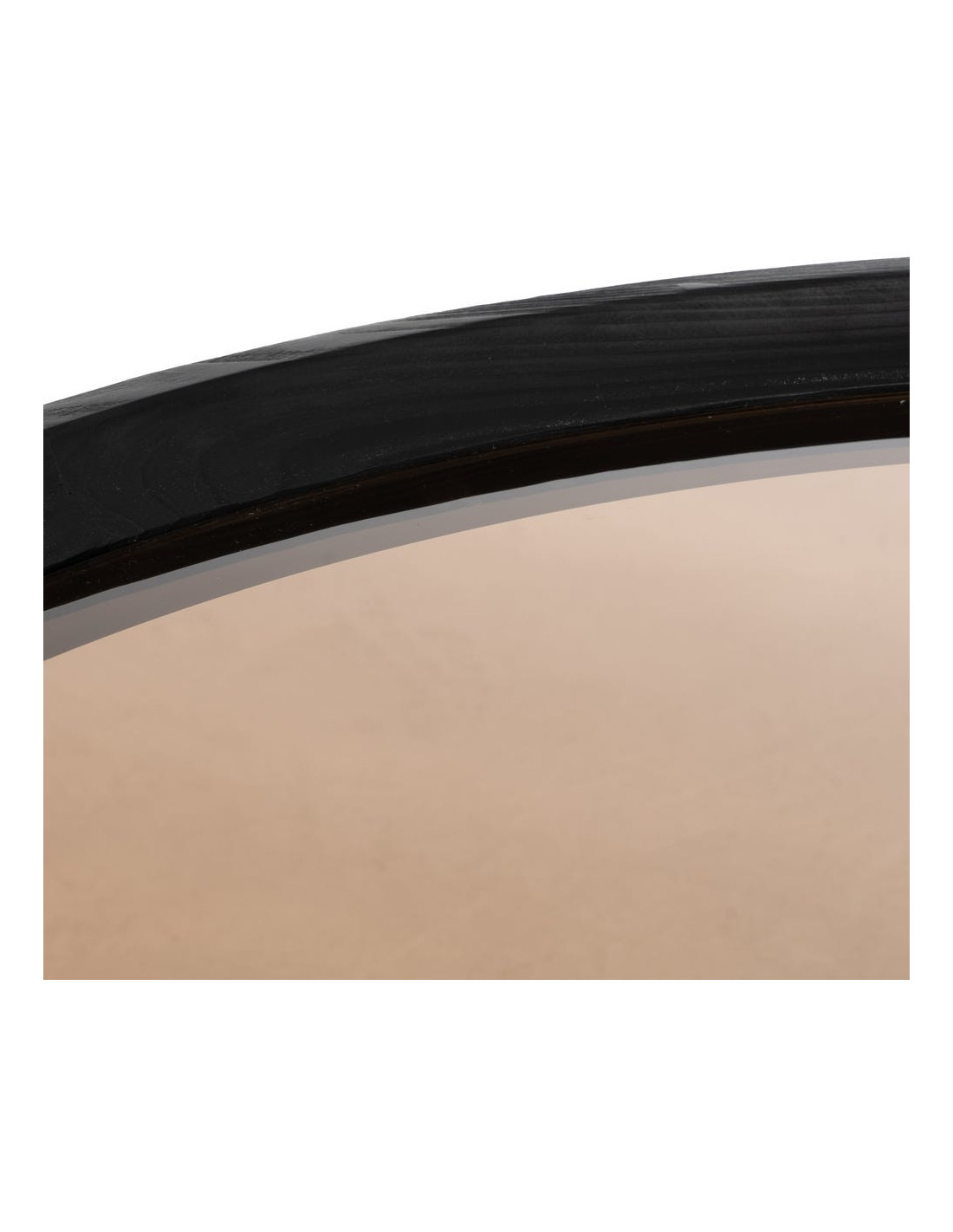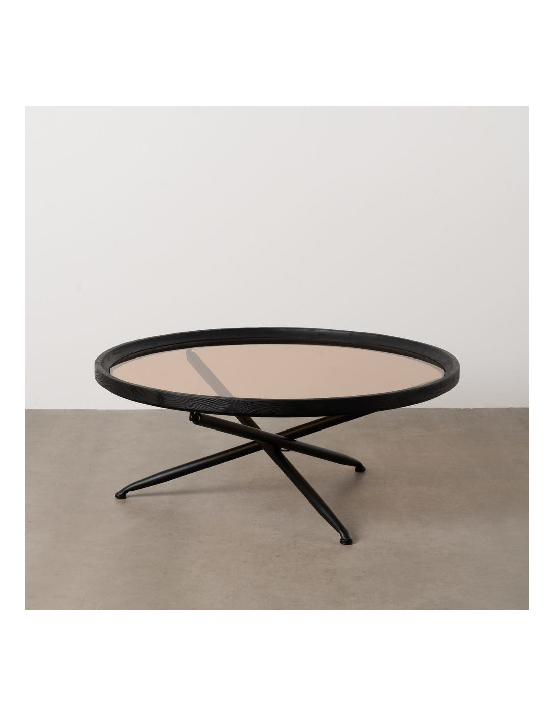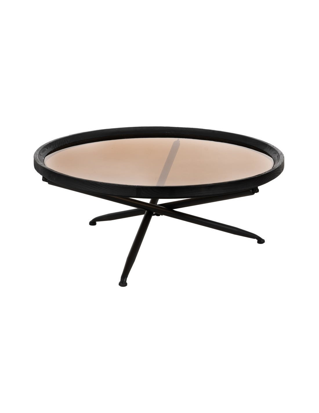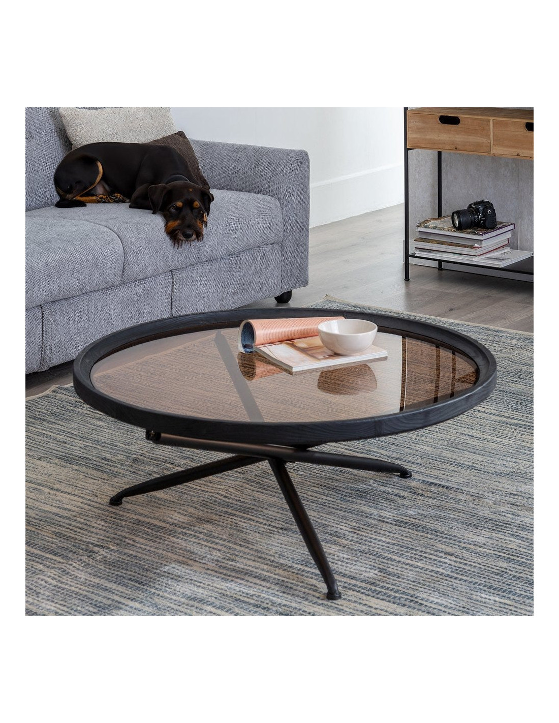 Zoriel associe un bord en bois de sapin noir à un plateau en verre trempé transparent fumé. La base en croix apporte stabilité et légèreté visuelle. Le format Ø 100 x H 40 cm s’intègre facilement devant un canapé 2 ou 3 places.
