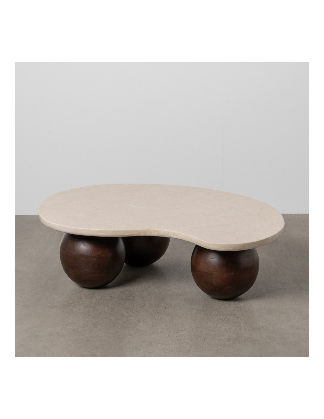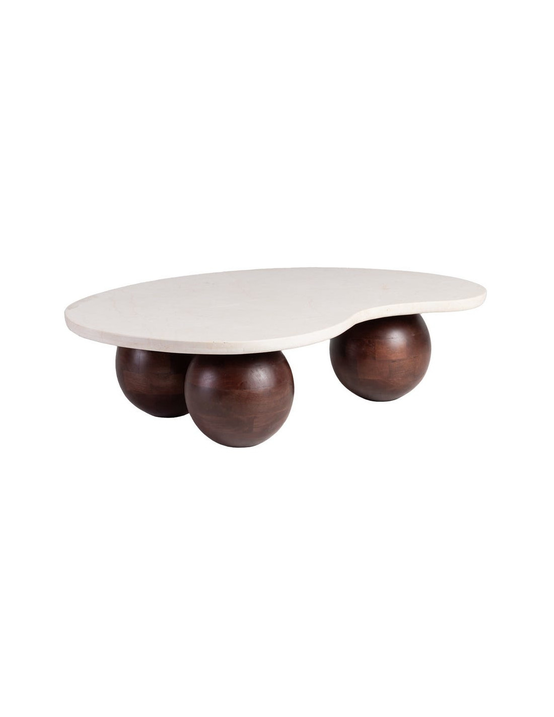 Grande Table basse moderne chic Organique en Marbre Blanc Bois de manguier Marron Nieva