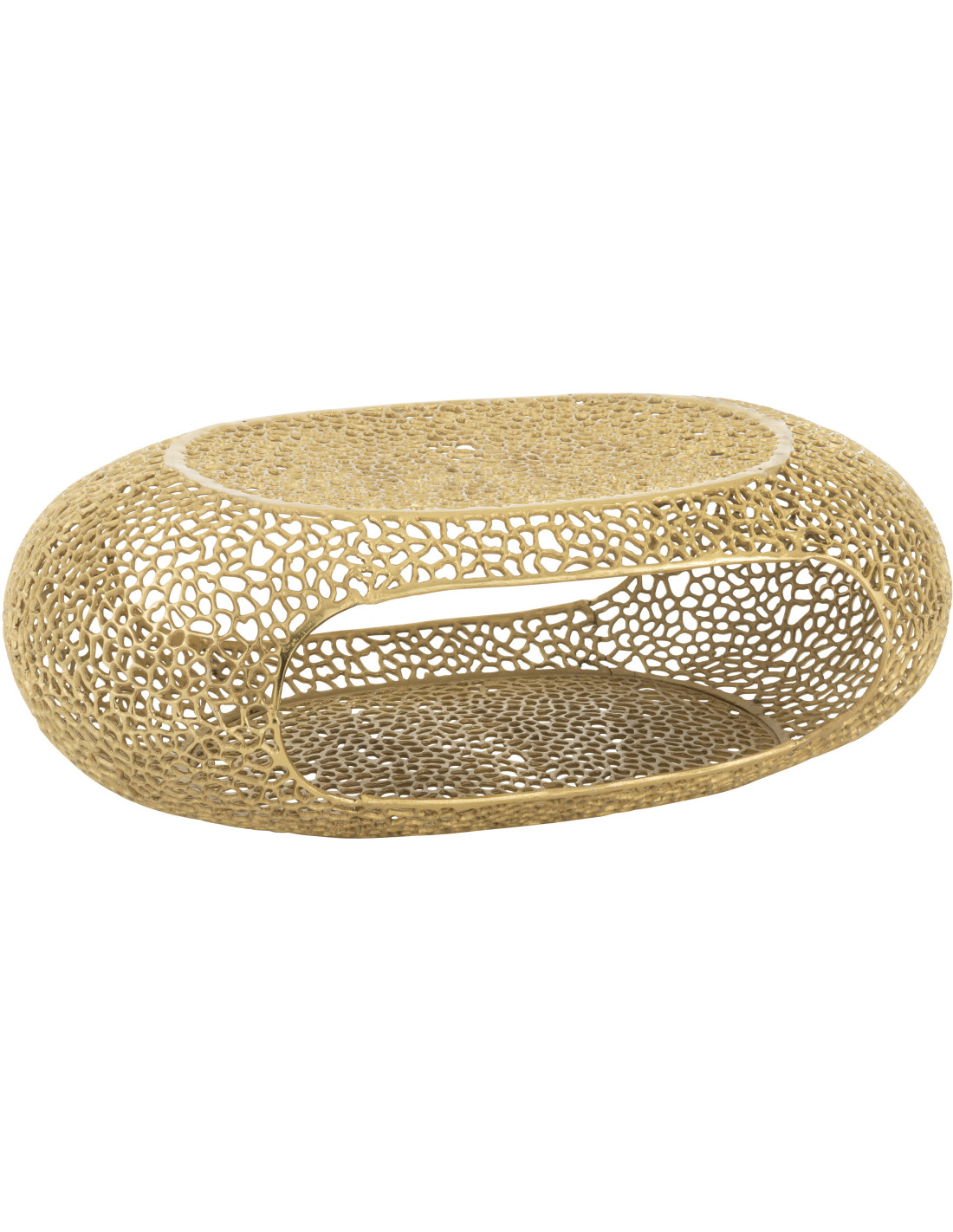 Grande Table basse moderne chic Ovale 1 étagère en Métal Doré Solara - 1